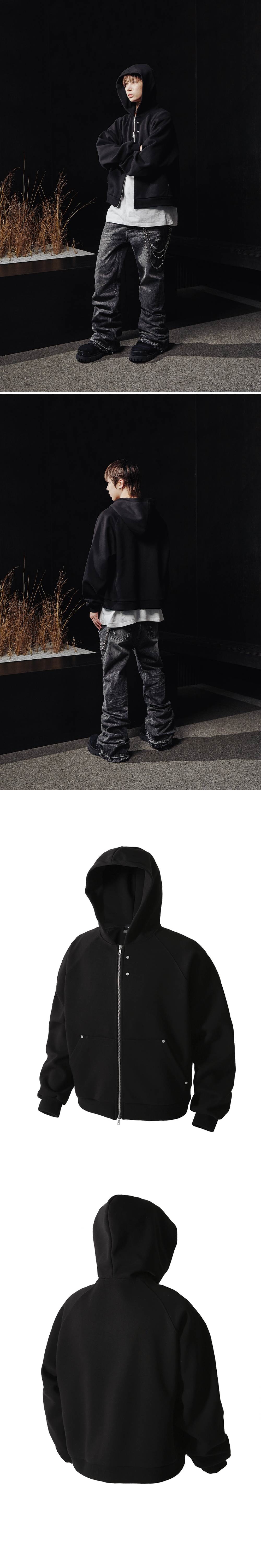 Fabric : Cotton 75%, Polyster 25% - 오버 핏 - 크롭 기장 - 나그랑 패턴 - 시그니처 리벳 포인트 - 2way Zipper YKK 社 제품 - 자체 개발 원단으로 겉면과 내부 원단의 부드러운 촉감이 특징 • 제조국 : 대한민국 • 세탁 방법 : 뒤집어 세탁망 세탁 권장, 건조기 사용 금지 Size Guide (단위 CM) M : 가슴 65, 총장 65, 소매 81 L : 가슴 67, 총장 66, 소매 82