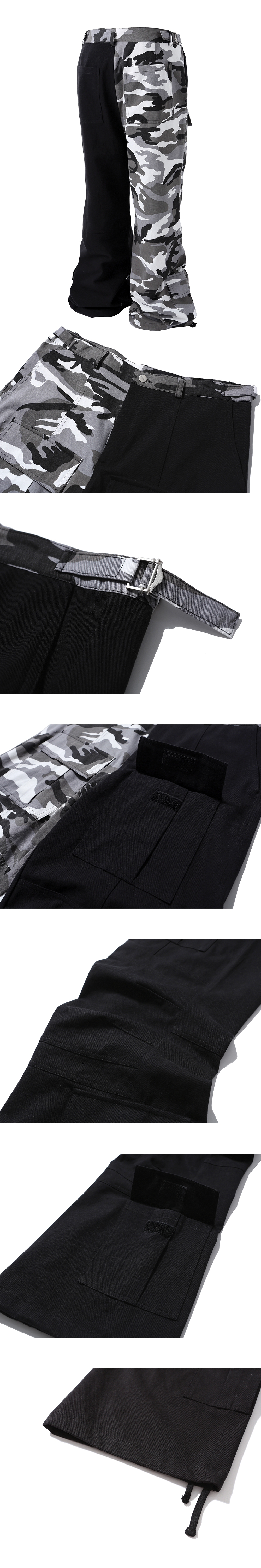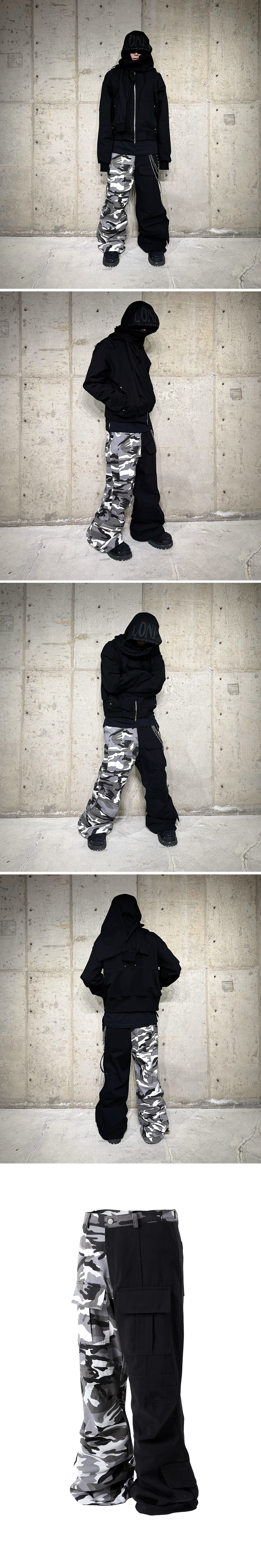 Fabric : 100% Cotton - 플레어 핏 - 고밀도 10's Twill Bio washing - 전면, 밑단 카고 포켓 - 무릎 절개 및 스티치 - 허리 사이즈 조절 비조 - 밑단 조절 스트링 - 전 후면 절개 스티치 - 지퍼 YKK 社 제품 • 제조국 : 대한민국 • 세탁 방법 : 찬물 세탁 권장, 건조기 사용 금지 Size Guide (단위 CM) M : 허리 41, 허벅지 31.5, 엉덩이 52, 밑위 34, 밑단 30, 총장 110 L : 허리 44, 허벅지 33, 엉덩이 54, 밑위 35, 밑단 31, 총장 112