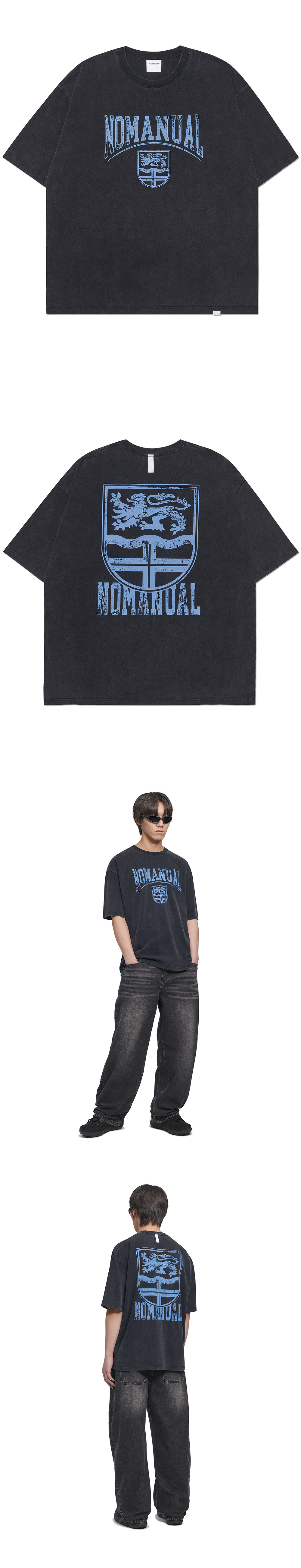 노매뉴얼 엠블럼 워시드 티셔츠 워시드 블랙