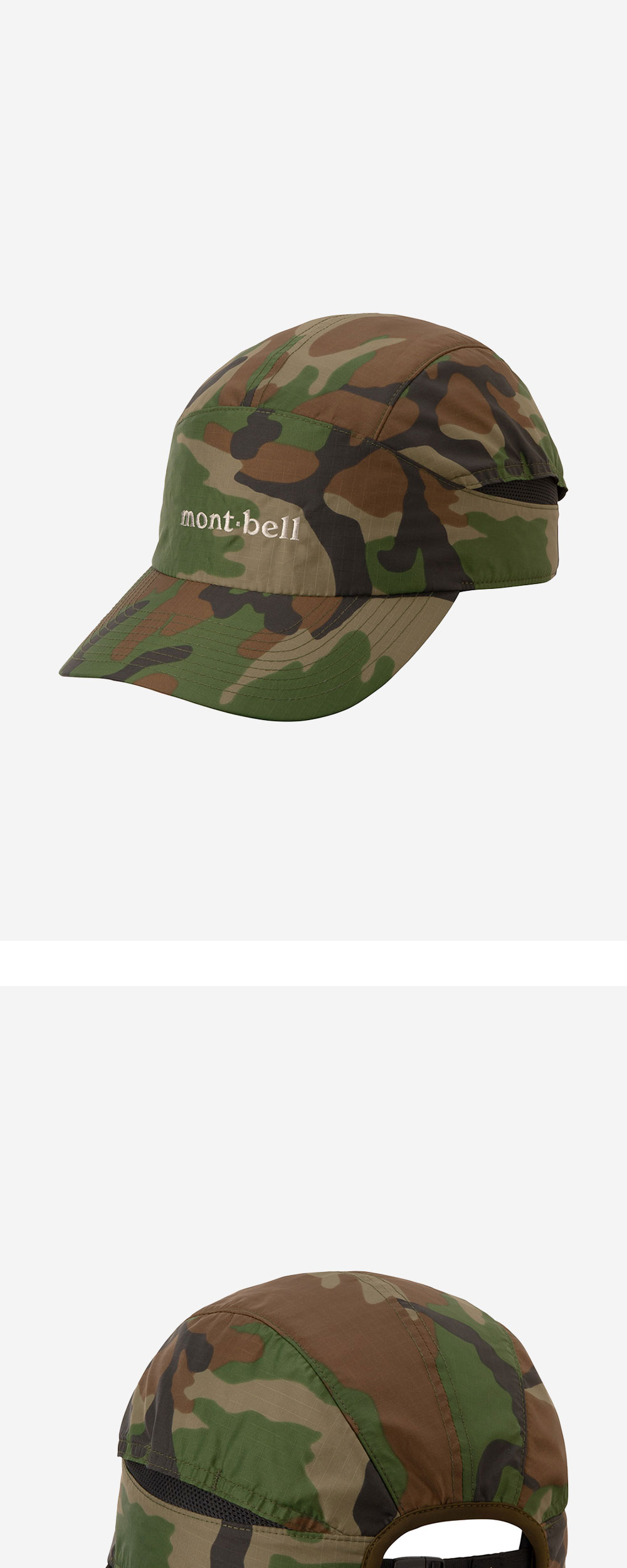 사이드 메쉬 소재로 통기성이 뛰어난 몽벨의 카모플라주 와치 캡 그린입니다. -아웃도어 활동과 어울리는 밀리터리 디자인 -아웃도어에서도 안심할 수 있는 UV 차단 (메쉬 부분 제외)