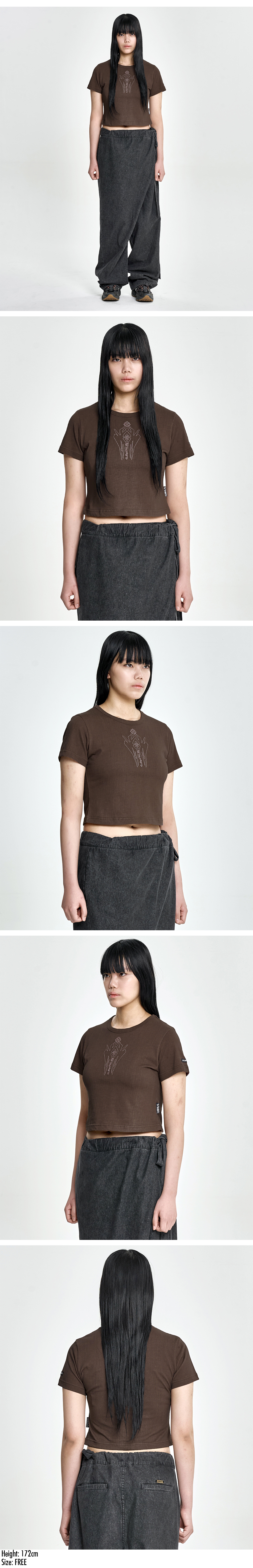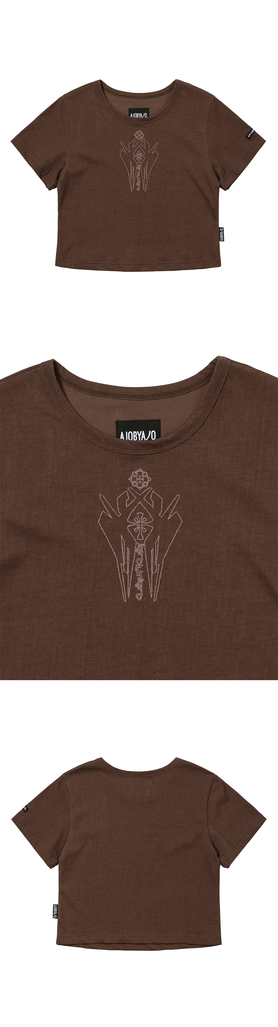AJOBYAJO Cross Symbol Cropped T-Shirt Brown