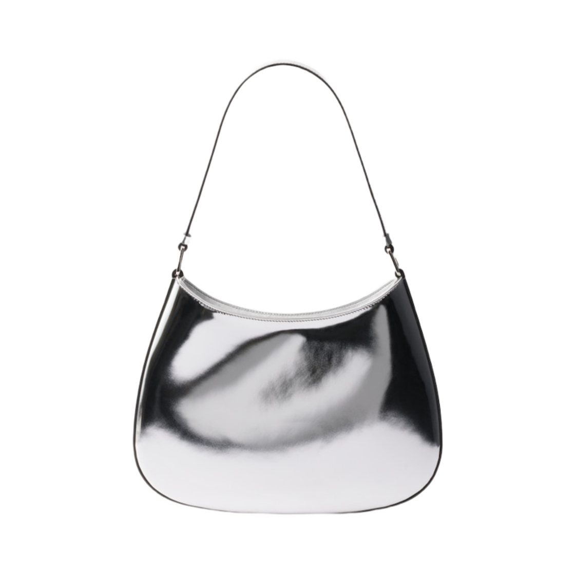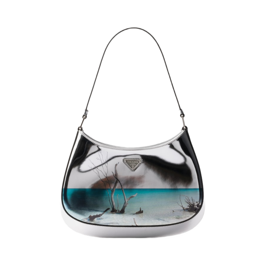 프라다 클레오 프린티드 브러쉬드 레더 숄더백 실버