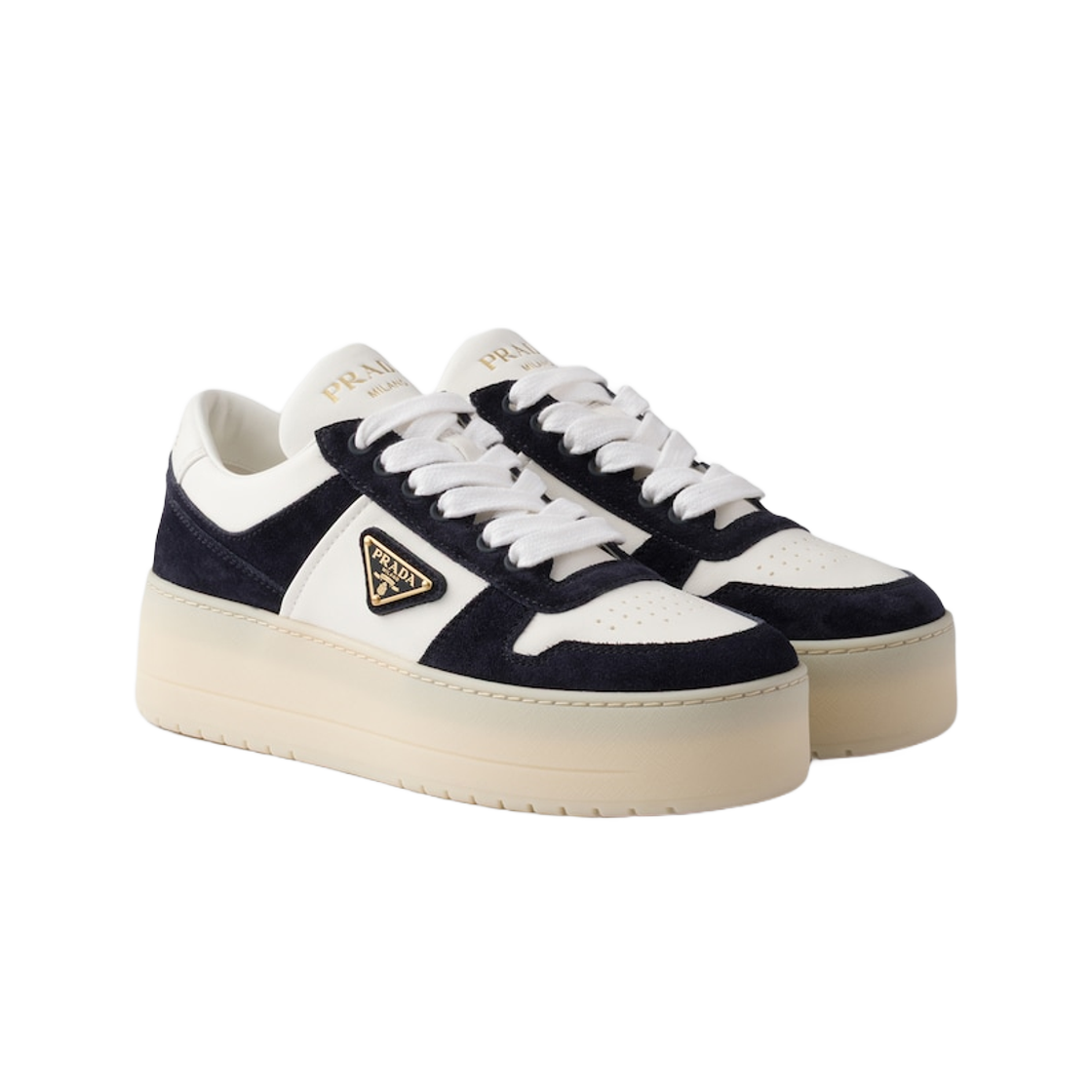 (W) Prada Downtown Bold Nappa Leather and Suede Sneakers White Blue