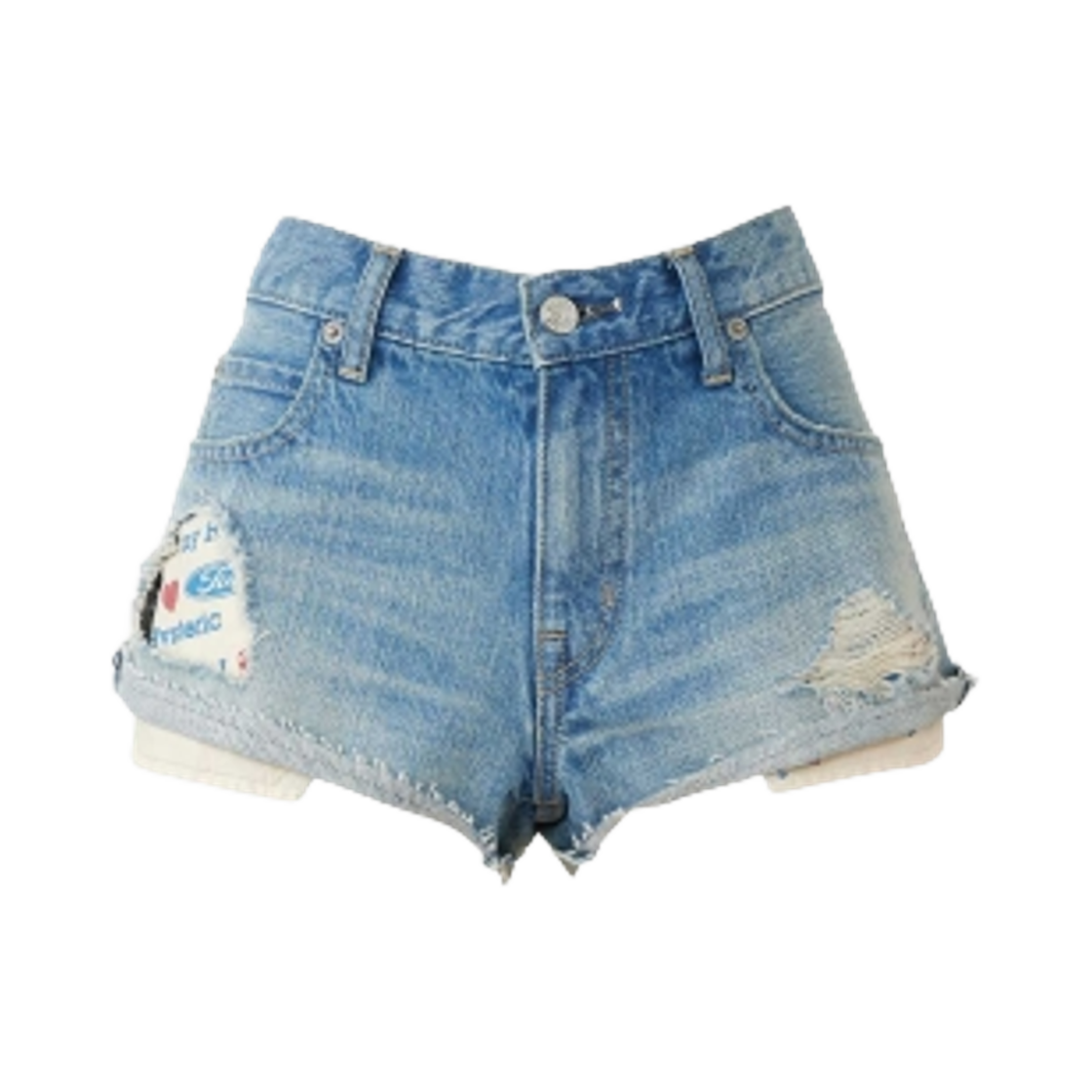 (W) Hysteric Glamour My Hysteric Damaged Denim Shorts Light Indigo Blue