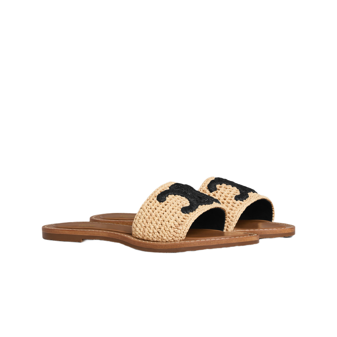 (W) Celine Lympia Mule in Raffia Black Natural