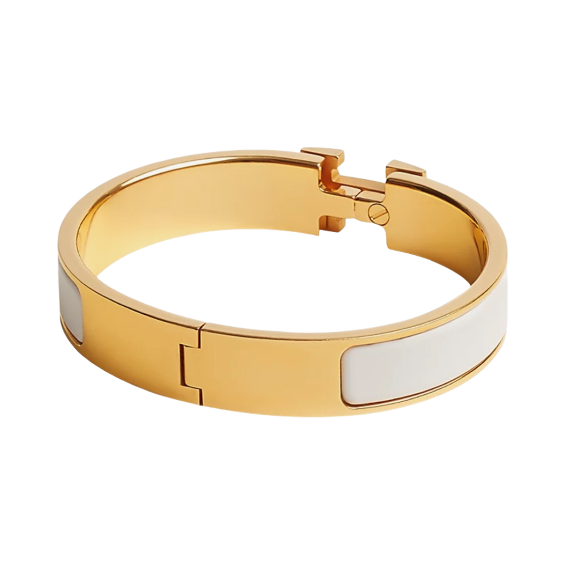 (W) Hermes Clic H Bracelet Gold & Blanc