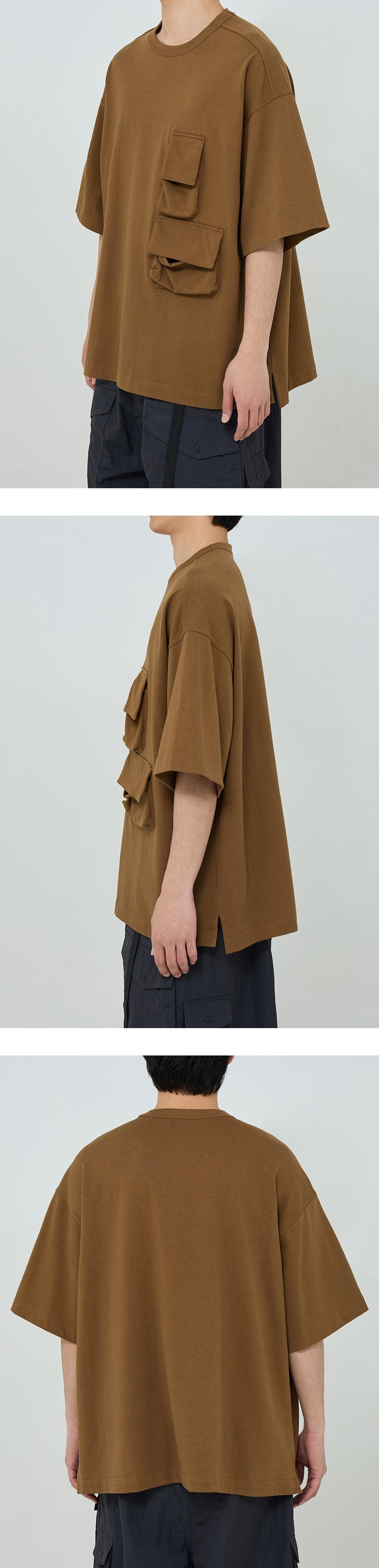 주머니 디자인이 돋보이는 반팔 포켓 티셔츠 · 여유 있는 오버사이즈 실루엣. · 골지가 있는 립 오프닝. · 묵직한 중량으로 탄탄한 면 원단 사용. · 수축 방지 가공된 원단으로 세탁 후에도 변형이 적음. · 가슴에 플랩이 부착된 입체감 있는 패치 포켓 사양.