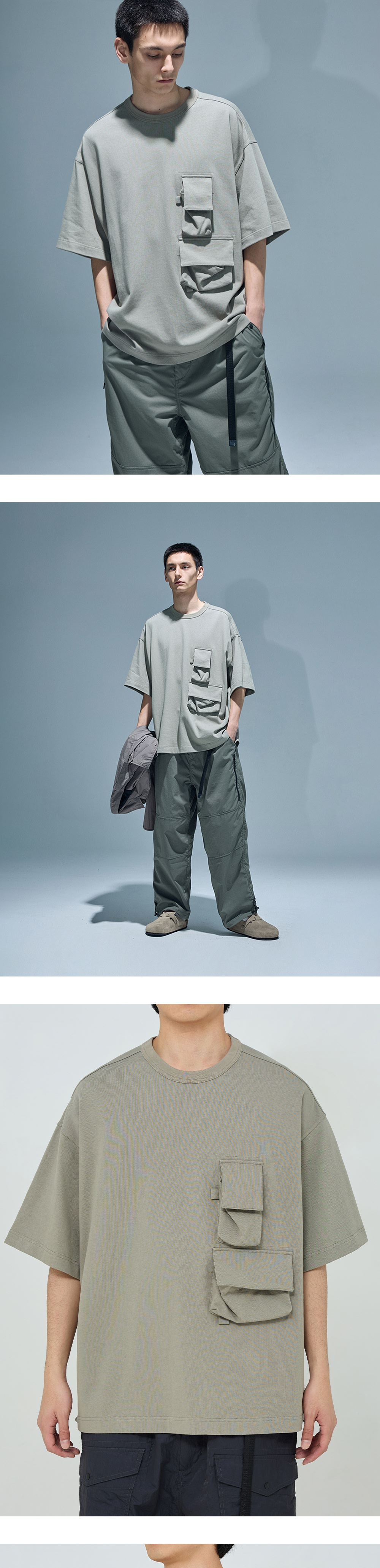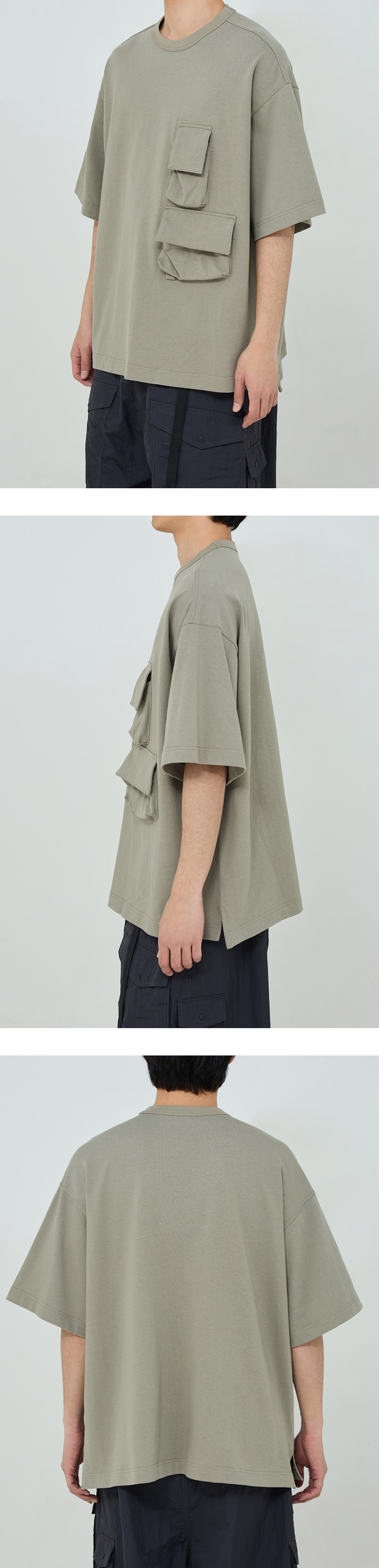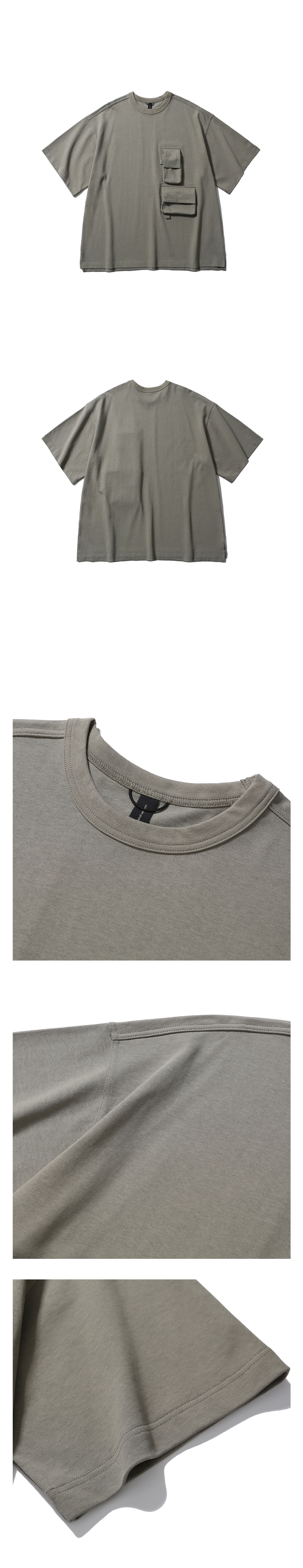 주머니 디자인이 돋보이는 반팔 포켓 티셔츠 · 여유 있는 오버사이즈 실루엣. · 골지가 있는 립 오프닝. · 묵직한 중량으로 탄탄한 면 원단 사용. · 수축 방지 가공된 원단으로 세탁 후에도 변형이 적음. · 가슴에 플랩이 부착된 입체감 있는 패치 포켓 사양.