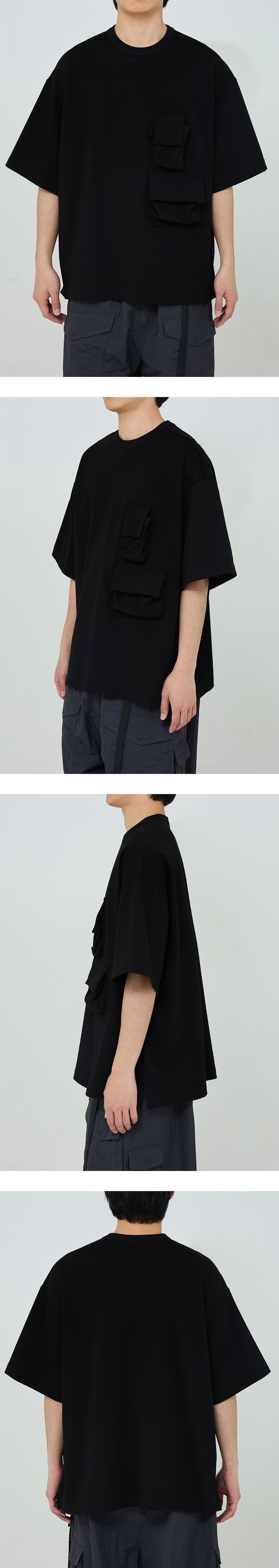 주머니 디자인이 돋보이는 반팔 포켓 티셔츠 · 여유 있는 오버사이즈 실루엣. · 골지가 있는 립 오프닝. · 묵직한 중량으로 탄탄한 면 원단 사용. · 수축 방지 가공된 원단으로 세탁 후에도 변형이 적음. · 가슴에 플랩이 부착된 입체감 있는 패치 포켓 사양.