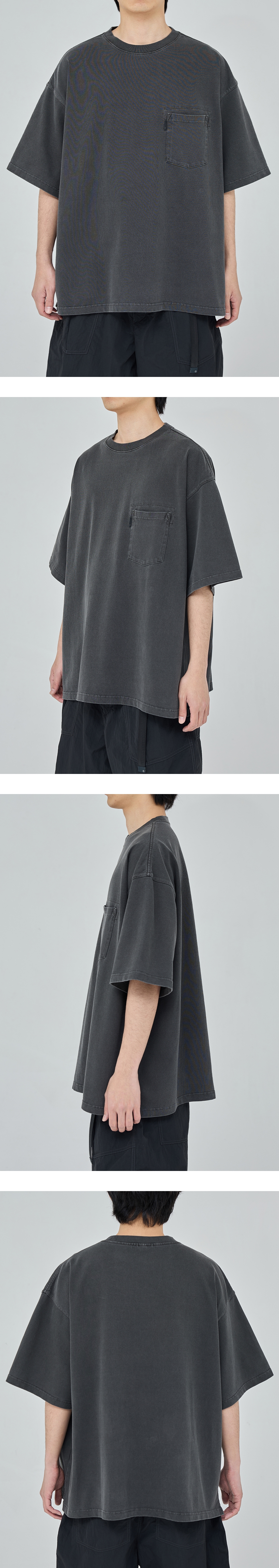 빈티지한 색감이 매력적인 묵직한 중량의 티셔츠 · 여유 있는 오버사이즈 실루엣. · 골지가 있는 립 오프닝. · 묵직한 중량의 탄탄하고 두께감이 있는 면 원단 사용. · 완성된 제품에 가먼트 다이를 한 제품으로 자연스럽고 빈티지한 색감 연출. · 간단한 소지품을 넣을 수 있는 가슴 주머니. · 주머니 부분 모이프 심볼 포인트 라벨 부착. 개체별 염색 편차 및 원단에 스크래치와 염색 흔적 혹은 올 풀림, 미세한 구멍이 존재할 수도 있습니다. 이는 제품 하자 및 불량이 아니며, 가먼트 다이 제품의 특징으로 위 사유로 무상 교환 및 반품은 어려우니 구매 전 반드시 참고 부탁드립니다.