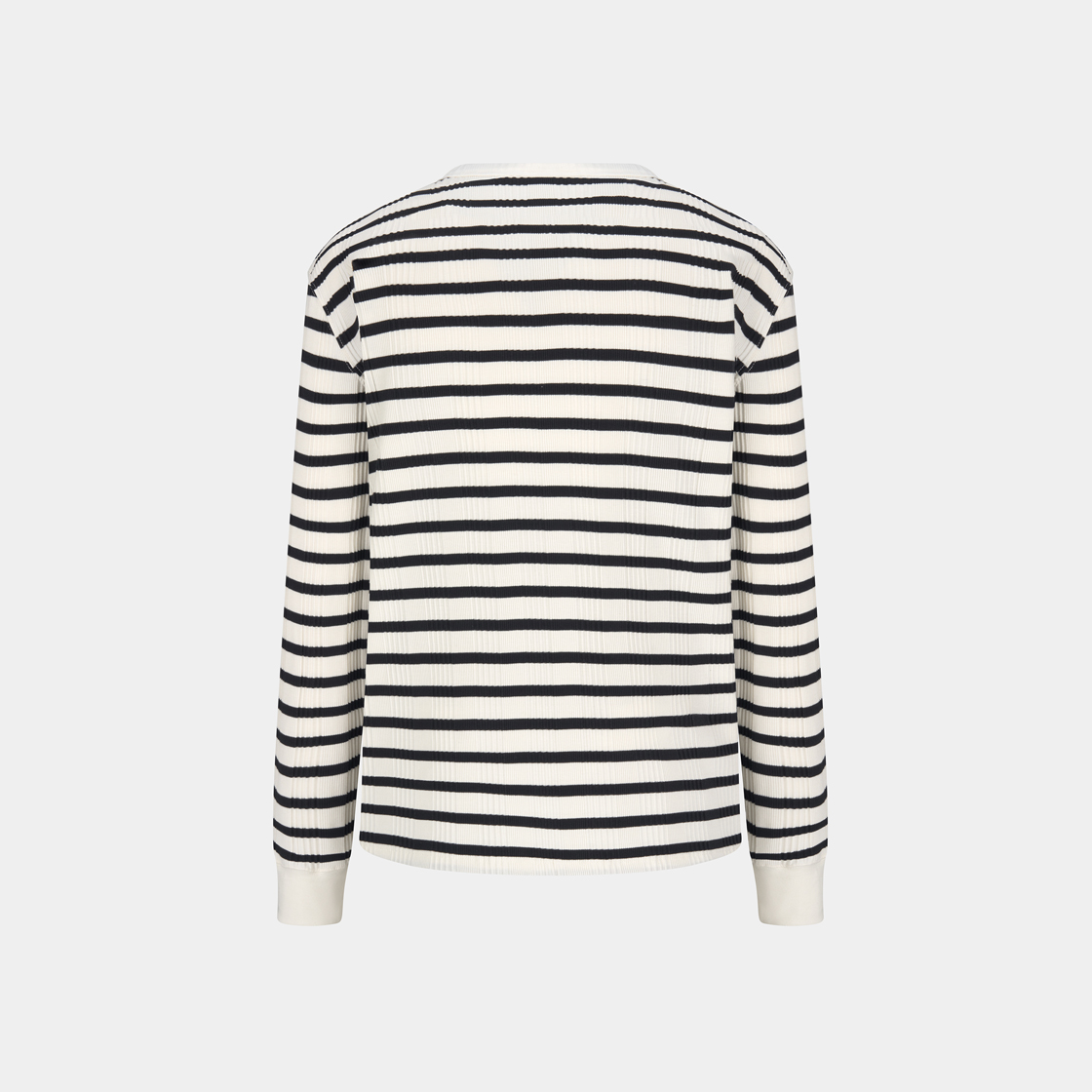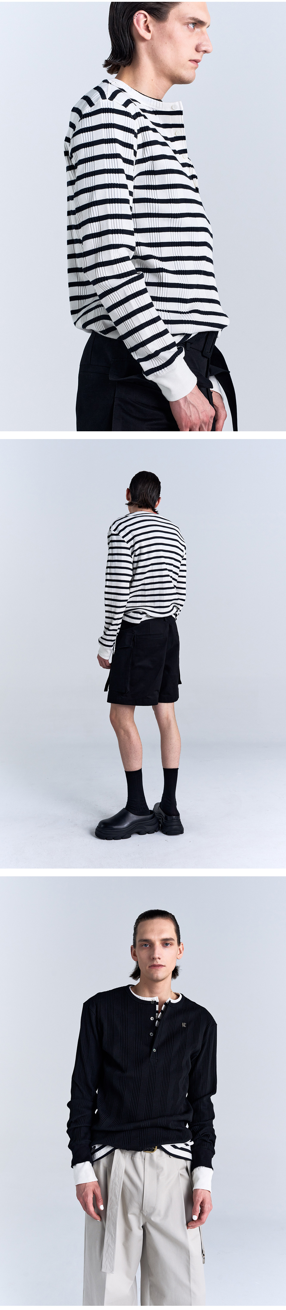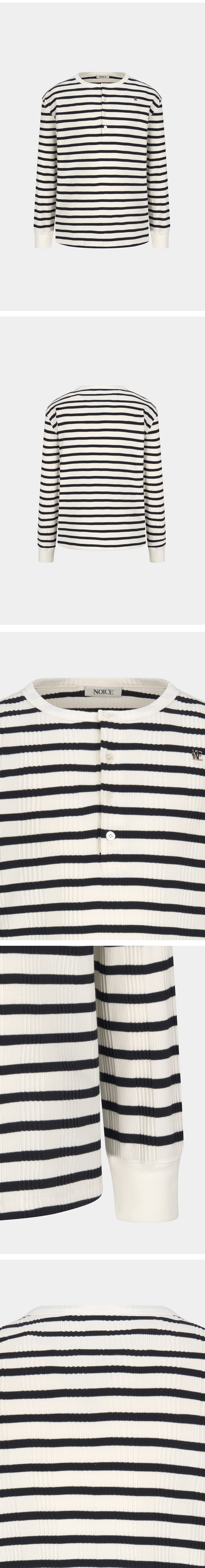 노이스 코튼 립 롱슬리브 헨리넥 스트라이프