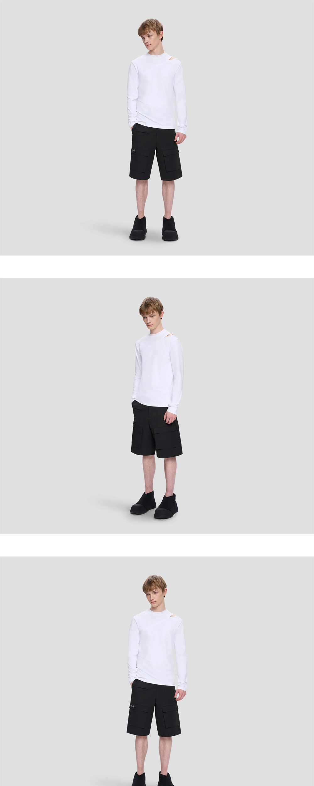 여러 개의 패치 포켓 디테일이 인상적인 엘리엇 에밀의 셀룰래 카고 쇼츠 블랙입니다. -오버사이즈 핏 -전면과 후면의 패치 포켓 -허리 뒷쪽의 H 모양 벨트 루프 -앞쪽 포켓 프랩의 H 클립 디테일
