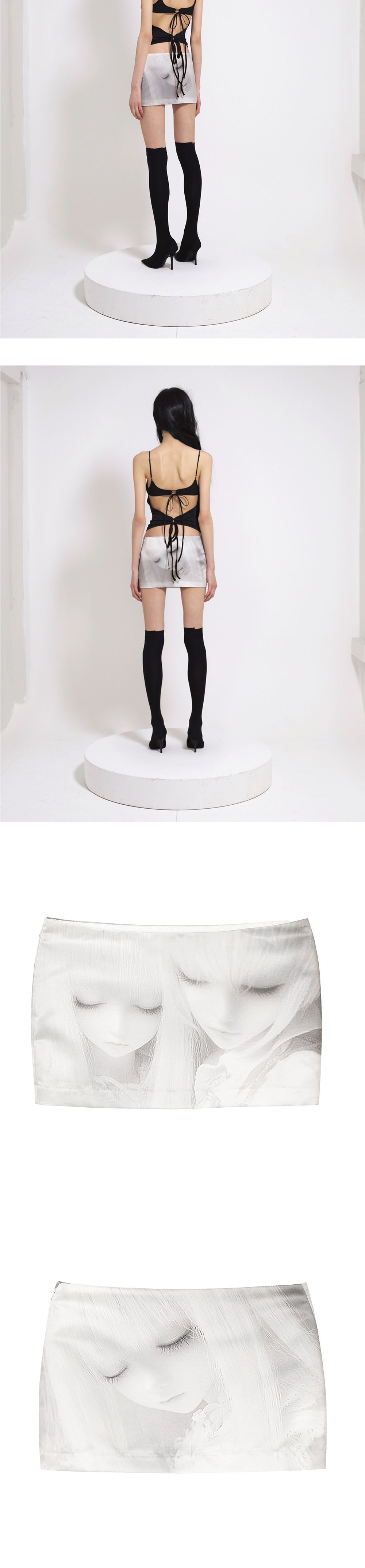 디지털 프린팅 스커트 YKK 사이드 콘솔 지퍼 안감 내장 부드럽고 실키한 텍스처의 사틴 원단 Size(Length/Waist/Hip) 1 : 27cm/37.5cm/43cm 2 : 27cm/40.5cm/46cm 3 : 27.5cm/43.5cm/49cm Polyester 100%