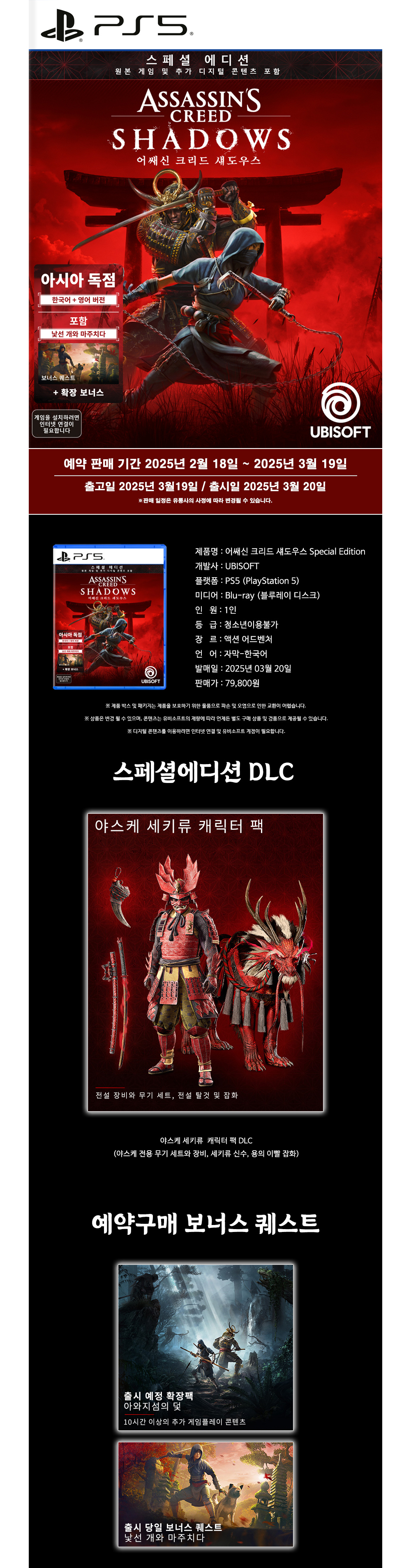 플레이스테이션 5 어쌔신 크리드 섀도우스 스페셜 에디션