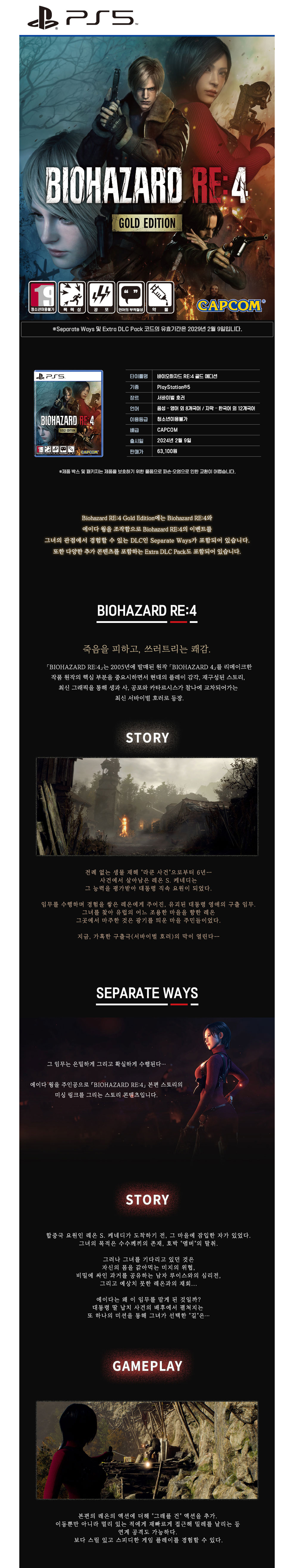 플레이스테이션 5 바이오하자드 RE:4 골드에디션