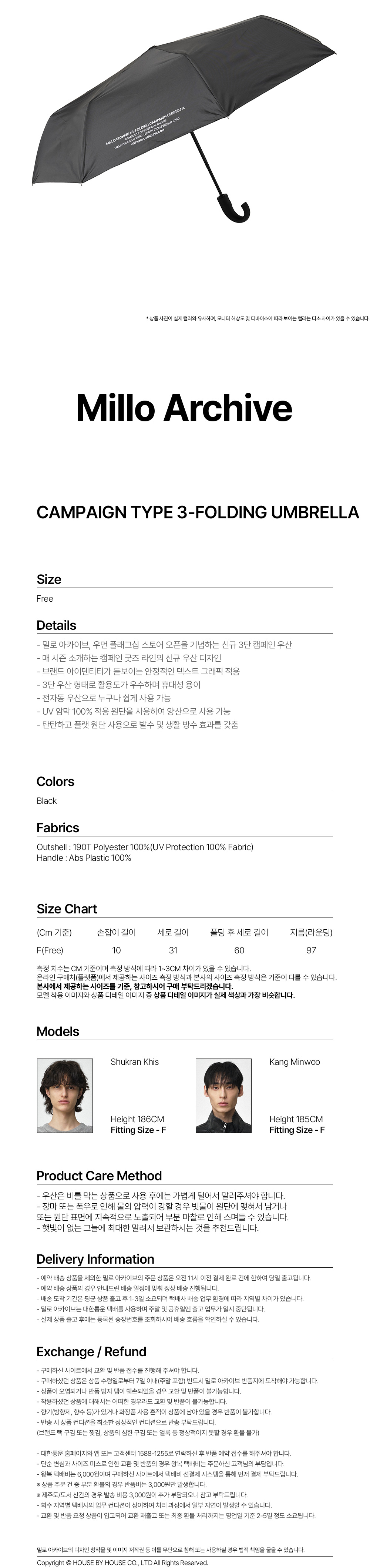 밀로 아카이브 캠페인 타입 3단 우산 블랙
