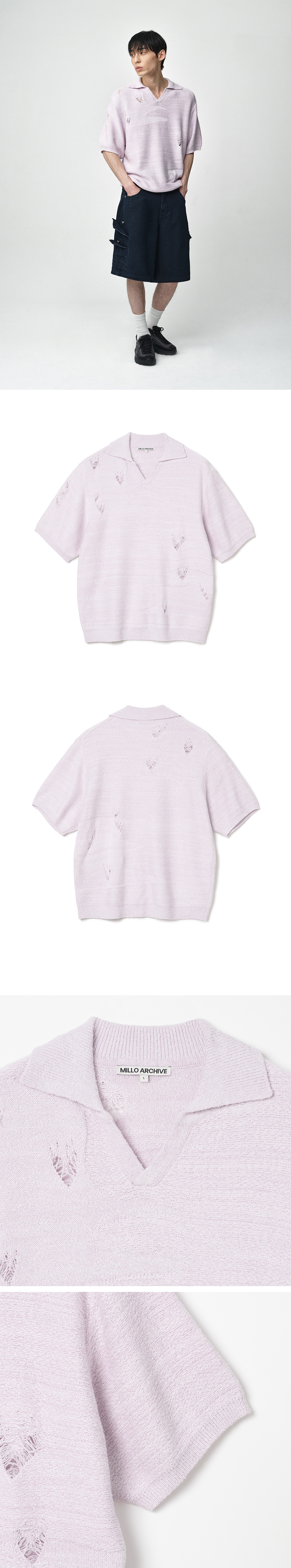 밀로 아카이브 크래쉬 컴포트 카라 니트 라벤더