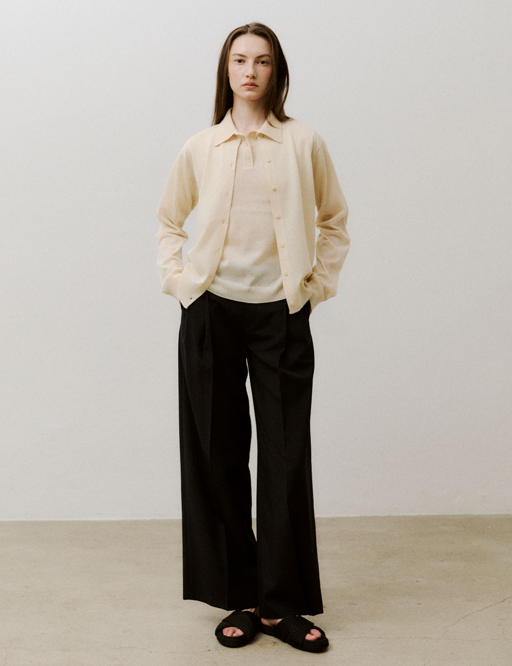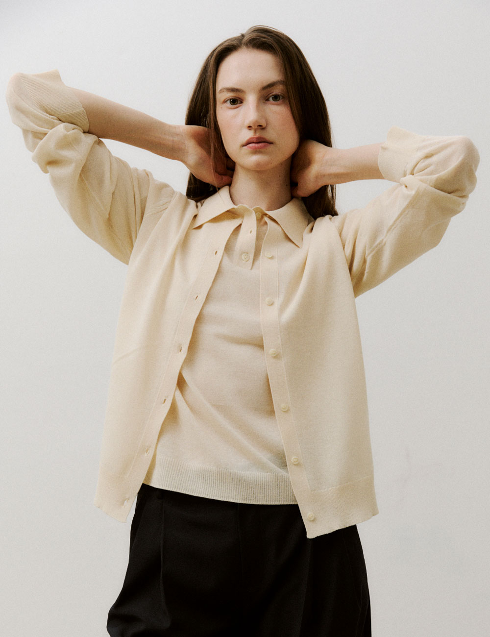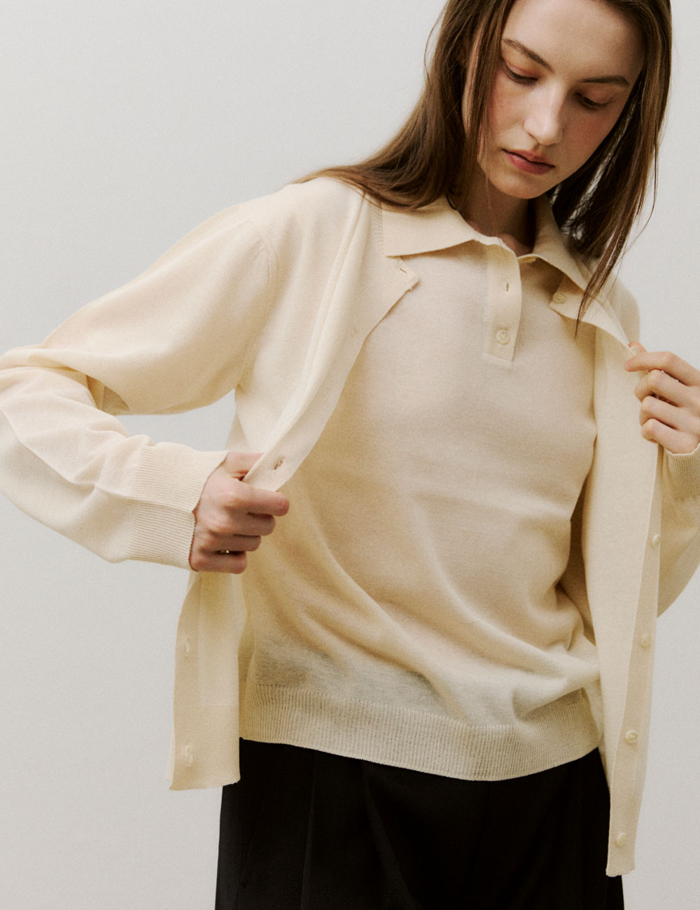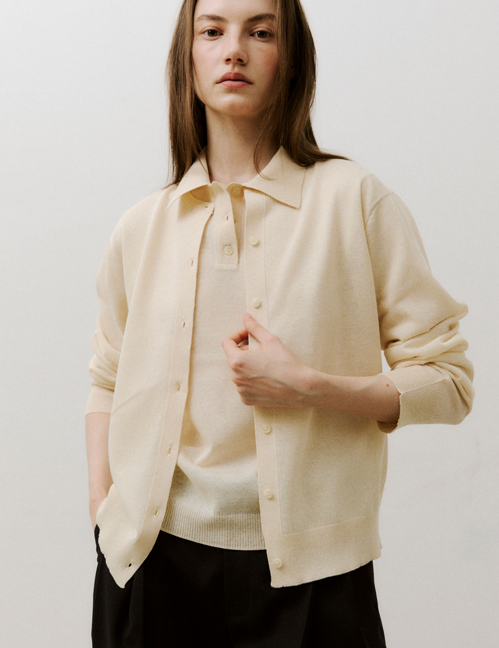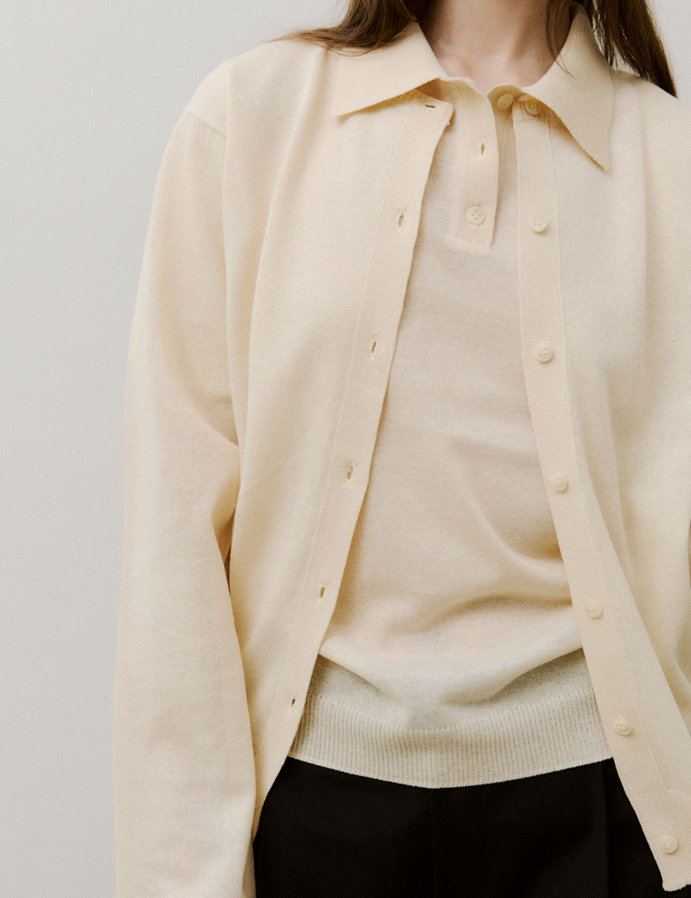 - 레귤러 핏의 면 혼방 니트 폴로 셔츠 - 버튼 여밈, 소매와 밑단에 골지니트 - 옆선에 포인트 라벨 디테일 - CP POLO SHIRT KNIT과 셋업으로 착용 가능