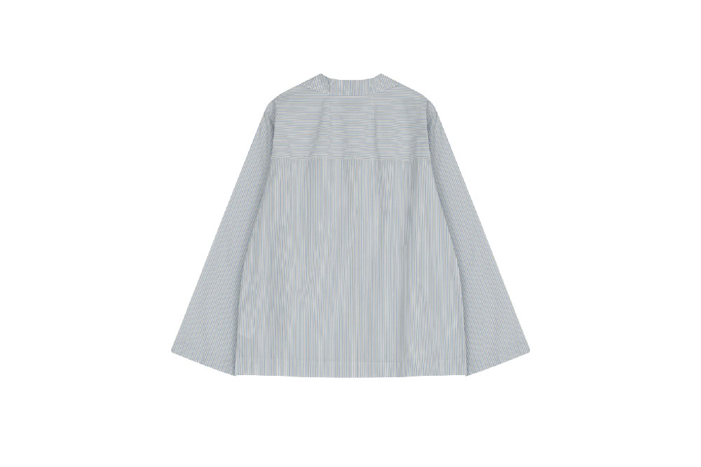 - 레귤러 핏의 수입원단 스트라이프 면 셔츠 - 워싱 가공으로 부드럽고 자연스러운 터치감 - 스프레드 칼라와 리본여밈 - 뒷목 다트와 요크 디테일