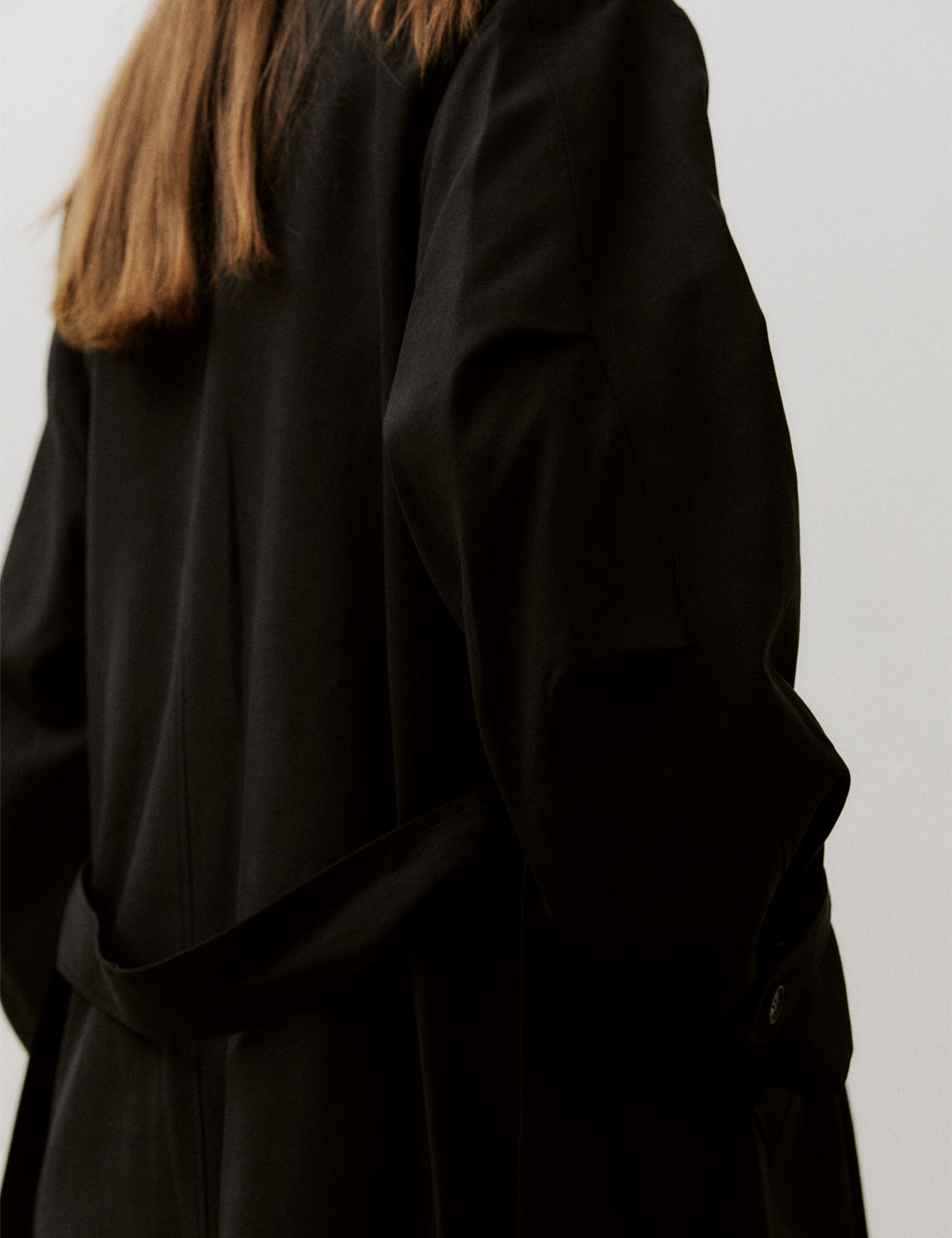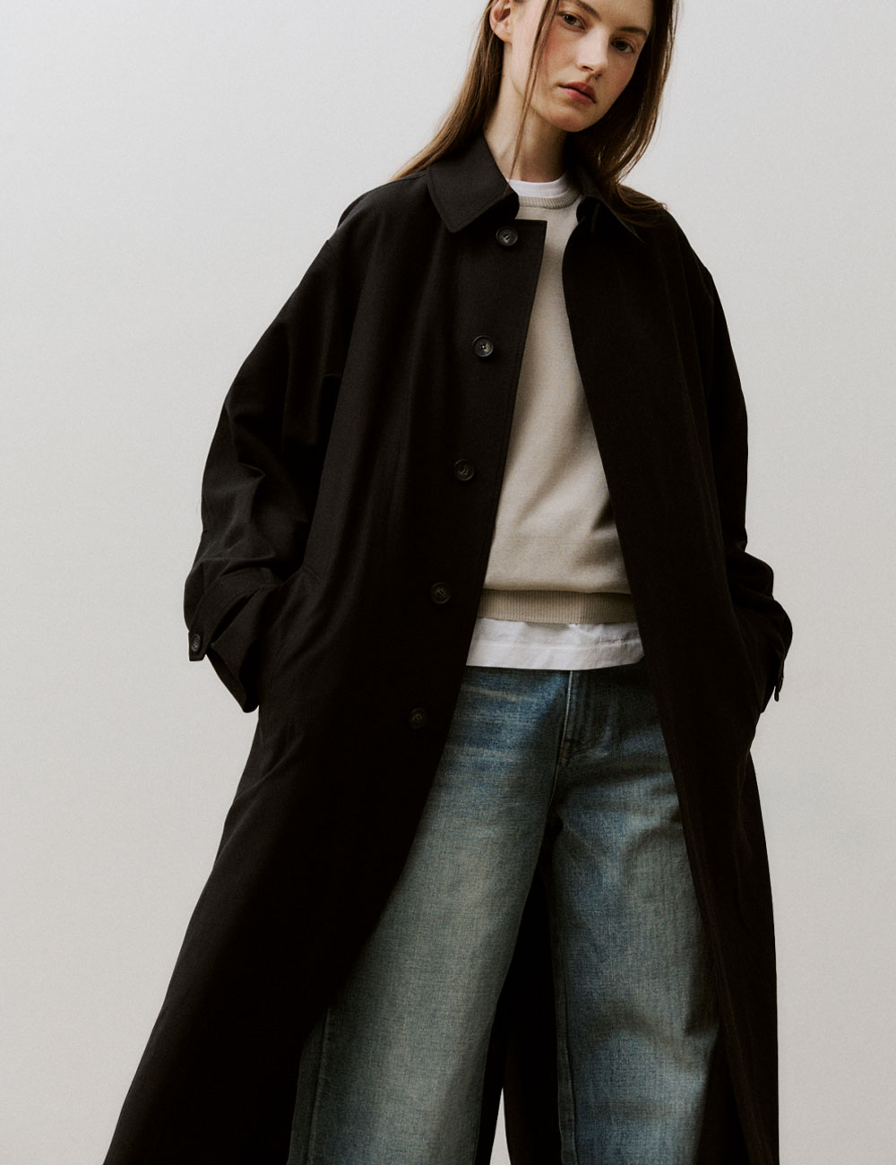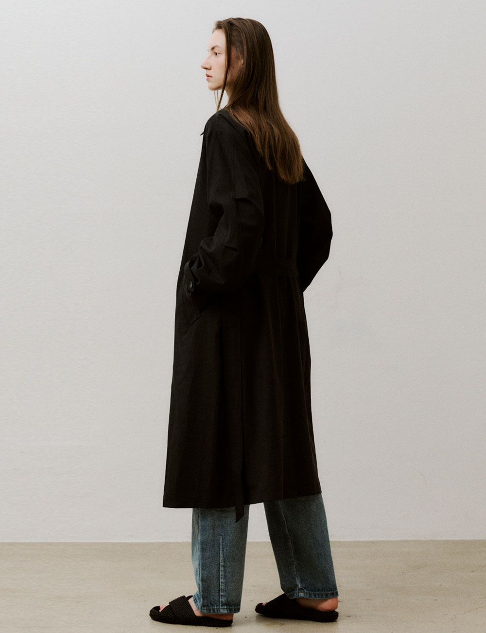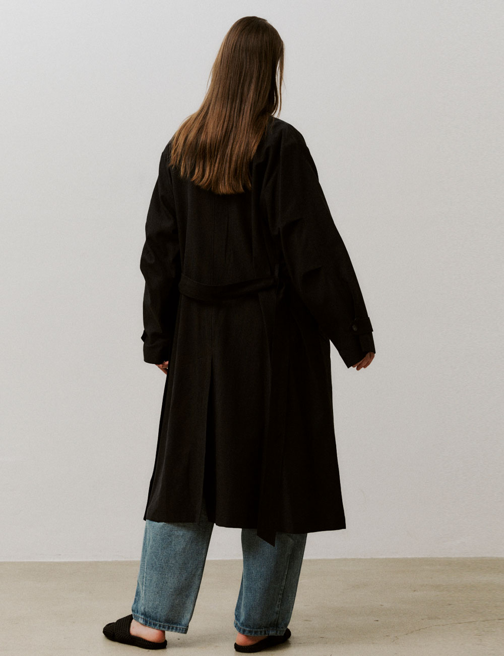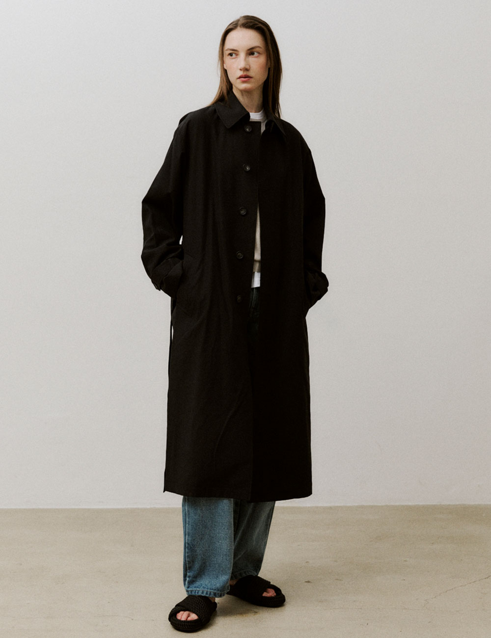 - 텐셀 면 린넨 혼방 맥코트 - 드롭 숄더와 세미 오버사이즈 핏 - 스프레드 칼라에 히든 버튼 여밈 - 벨트고리 및 탈부착 가능한 벨트 - 넥라인 탭과 조절 가능한 소매 버튼탭
