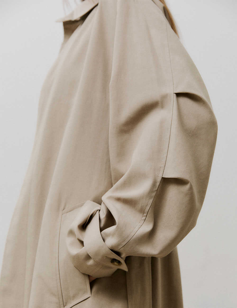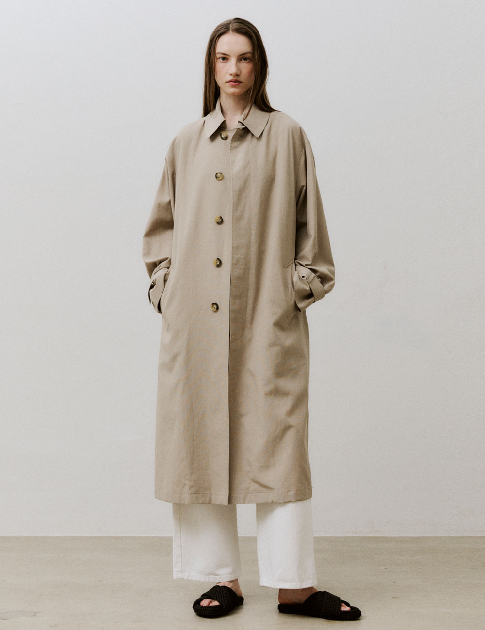 - 텐셀 면 린넨 혼방 맥코트 - 드롭 숄더와 세미 오버사이즈 피팅 - 스프레드 칼라에 히든 버튼 여밈 - 벨트고리 및 탈부착 가능한 벨트 - 넥라인 탭과 조절 가능한 소매 버튼탭