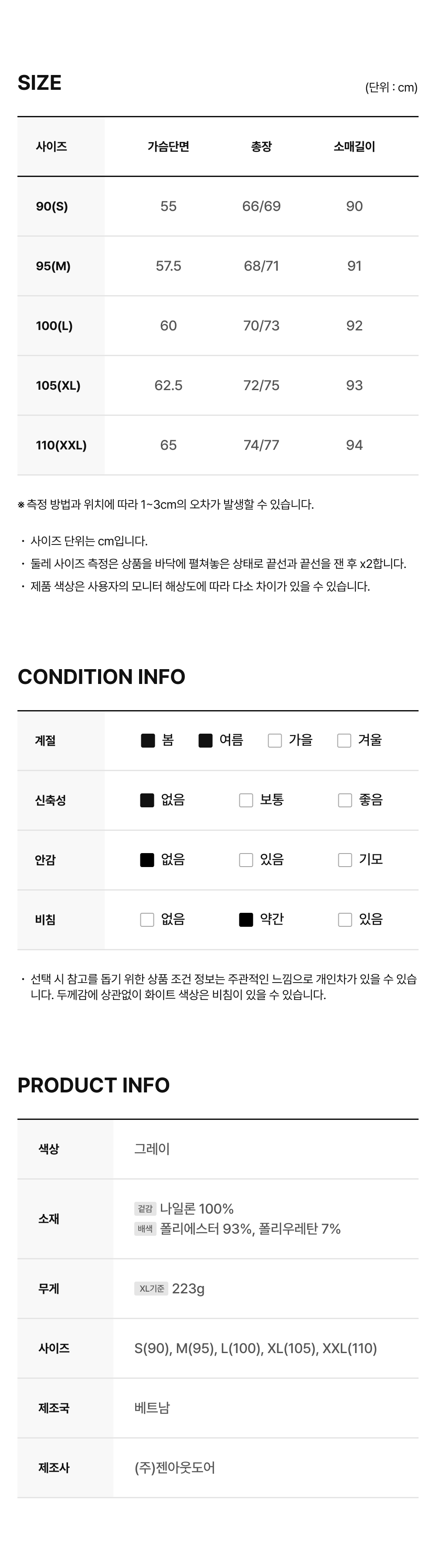 상품정보제공 고시