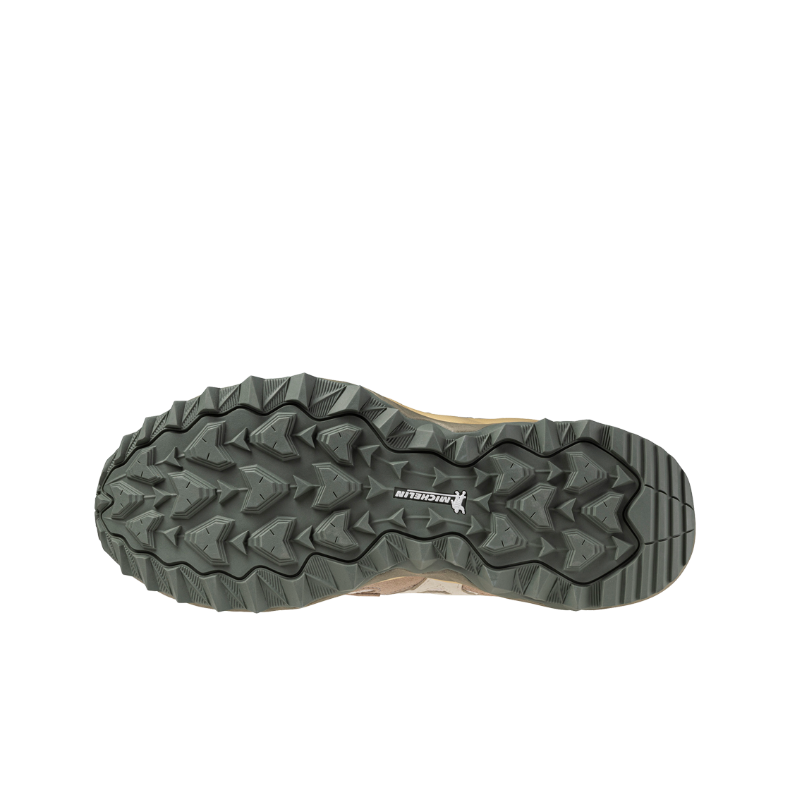 미즈노 트레일화의 큰 특징인 "Michelin Sole"을 활용하여 견고한 내구성 및 아이코닉한 아웃솔 형태가 특징인 슈즈입니다.