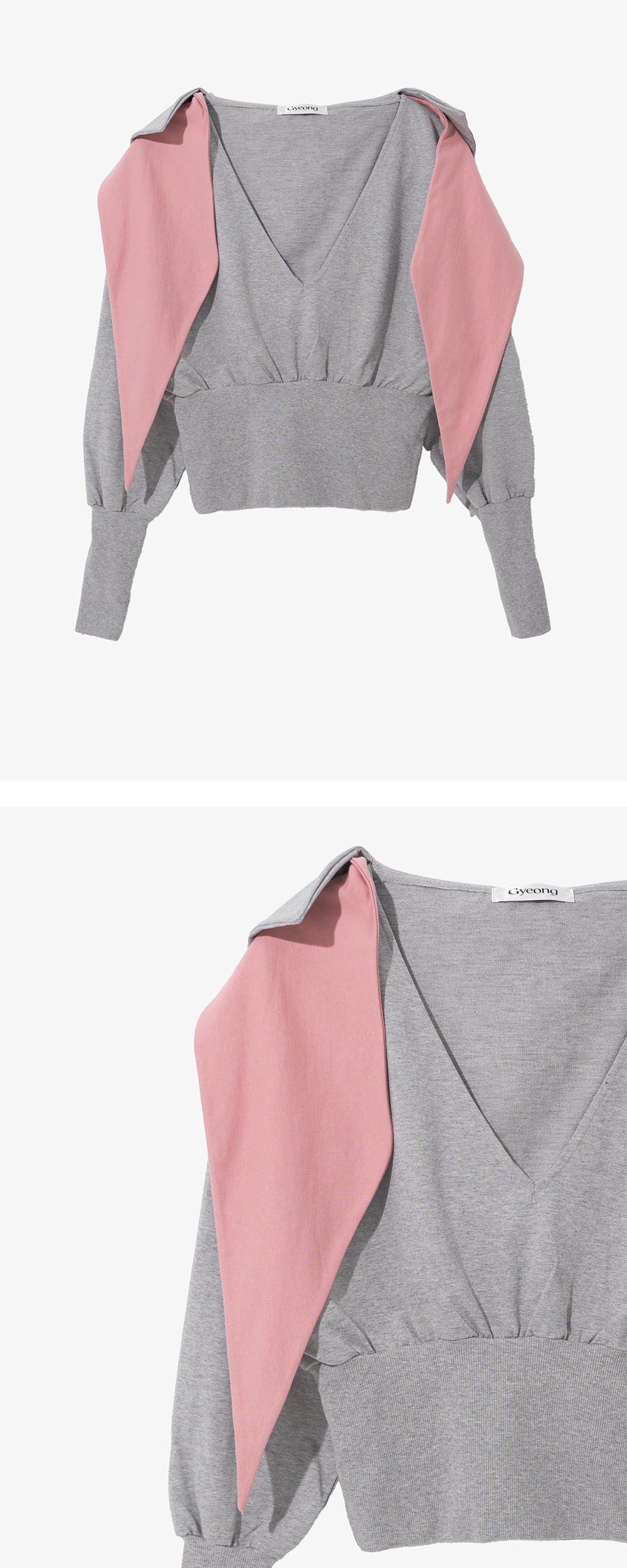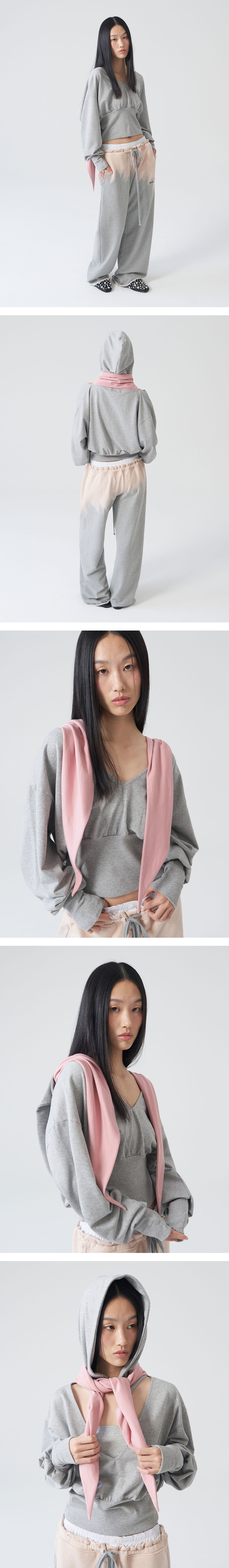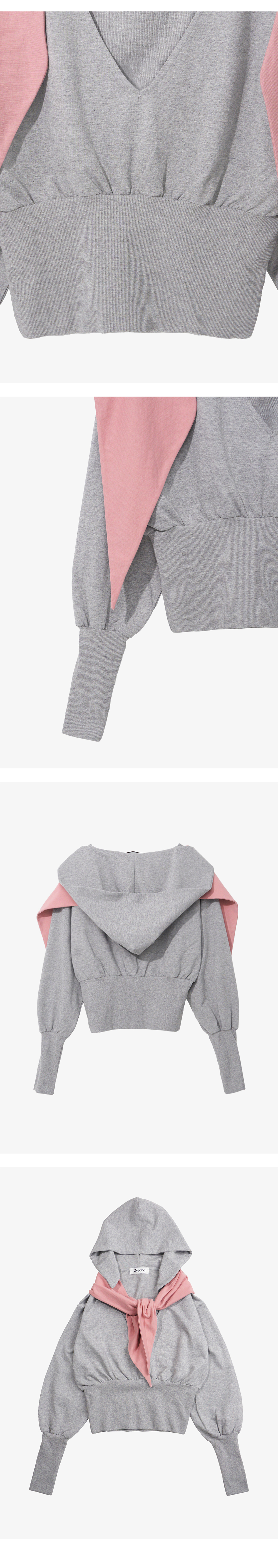 - 깊은 V넥의 스카프 타이 디테일 후드 탑 - 배색 스카프 디테일 - 부드러운 원단의 터치감 - 레귤러 핏의 실루엣 * Shell : 100% Cotton * Made in Korea