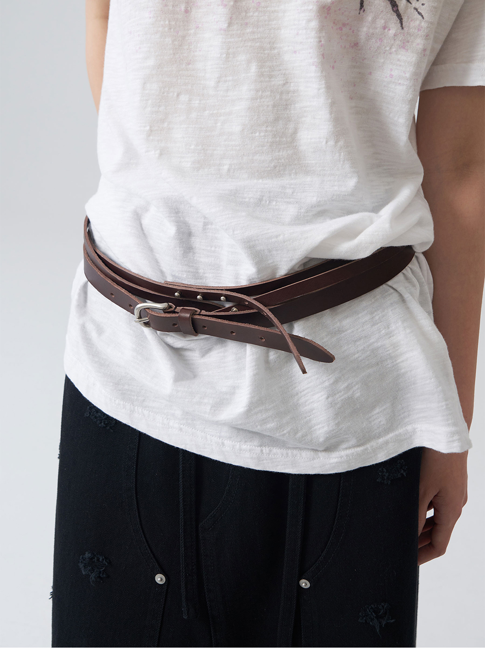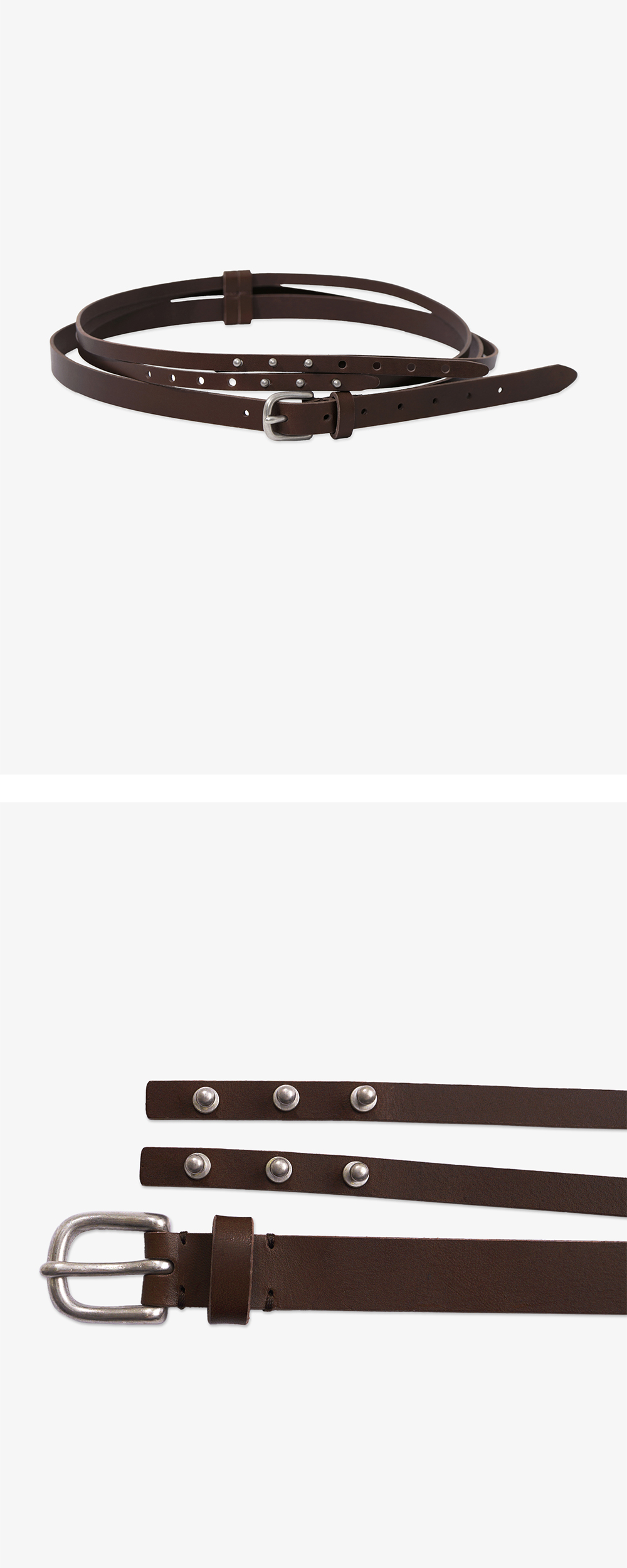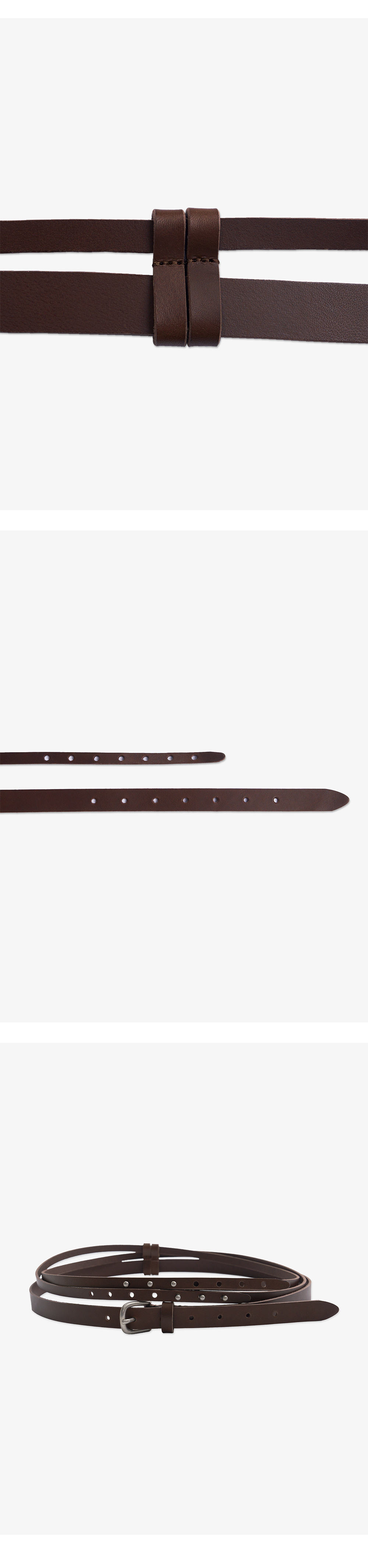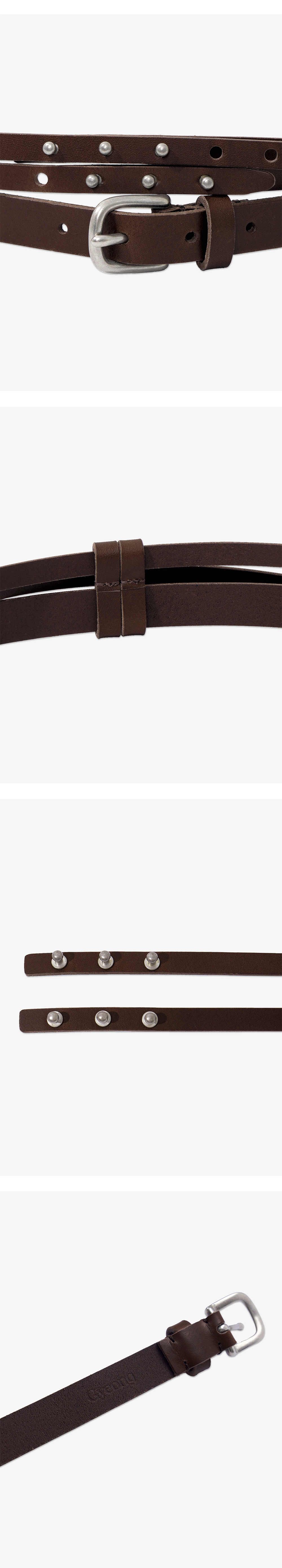 - 2가지 다른 형태의 레이어드 더블 벨트 - 20MM 버클 벨트 - 10MM 레이어드 벨트 - 후면 Gyeong 각인 로고 - 착용하는 정도의 따라 다양한 스타일링 연출 용이 * Shell : 100% Cow Leather * Made in Korea * Size Buckle Belt Strap Length 110 Strap Width 2 Layered Belt Strap Length 192 Strap Width 1