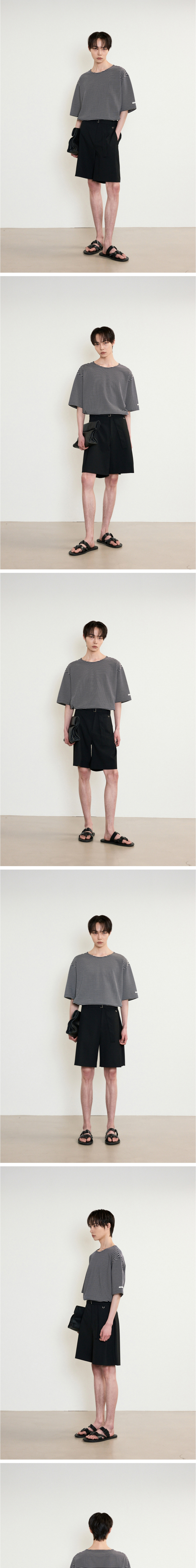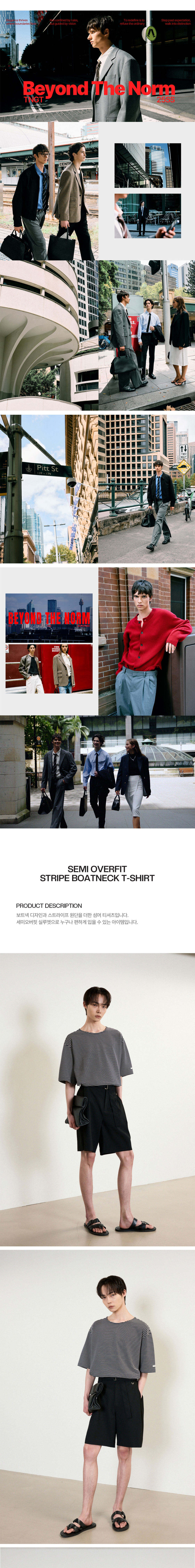 티엔지티 네이비 세미오버핏 스트라이프 보트넥 티셔츠