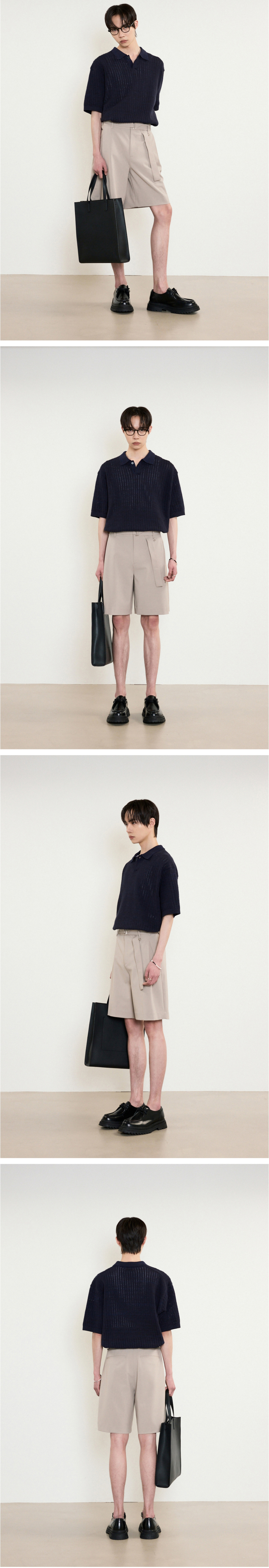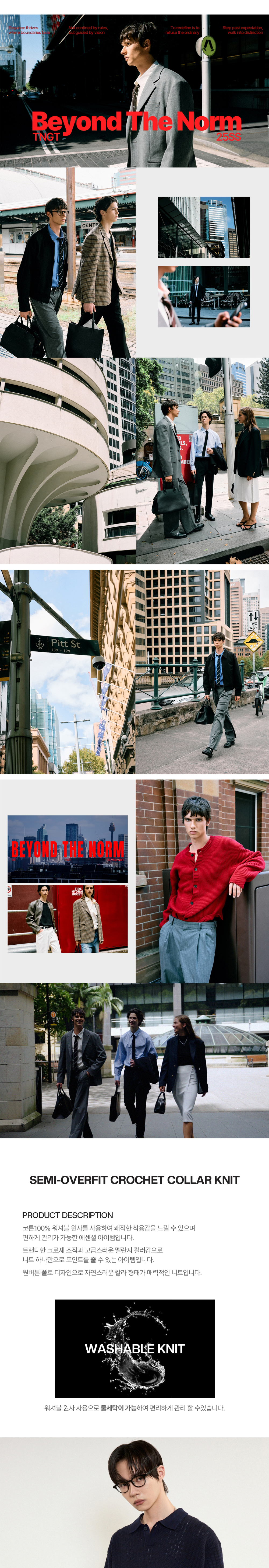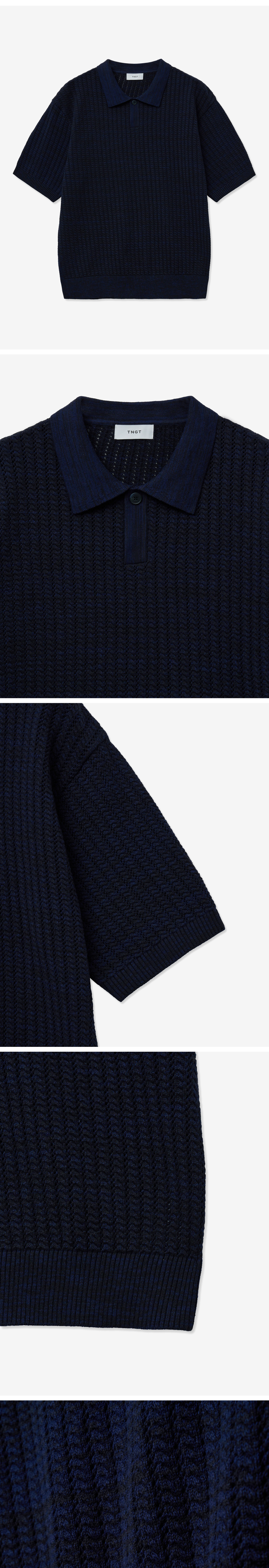 티엔지티 멜란지네이비 세미오버핏 크로셰 칼라니트