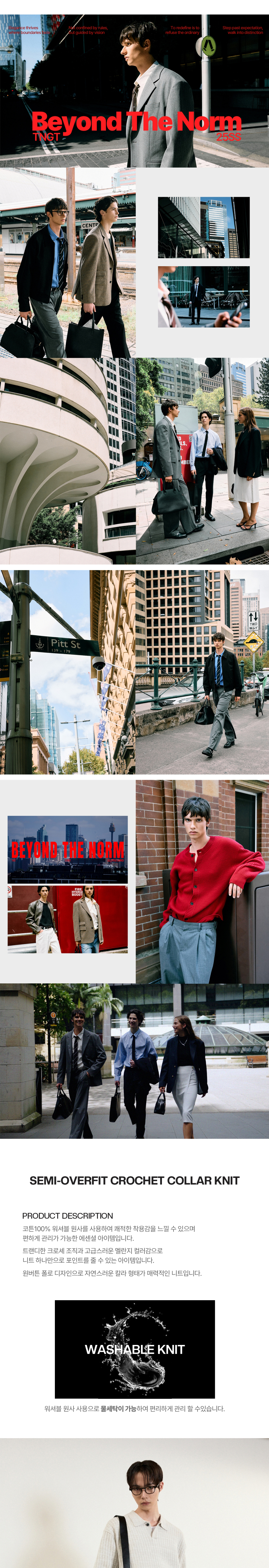 티엔지티 실버 세미오버핏 크로셰 칼라니트
