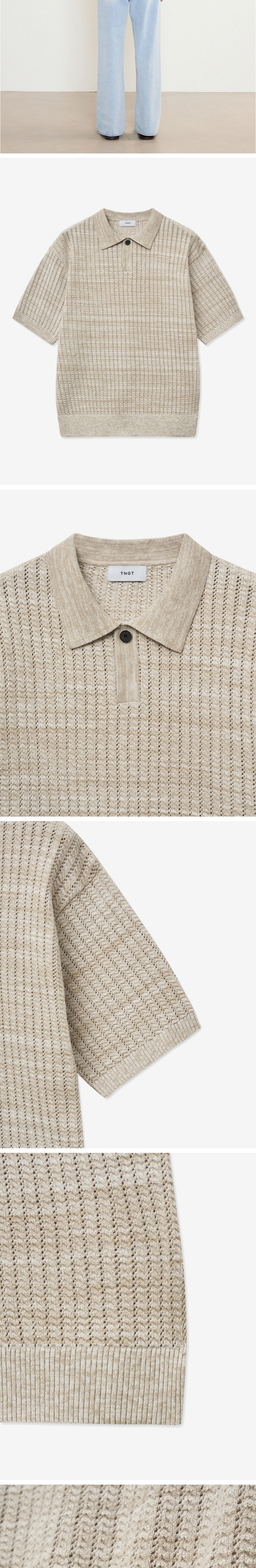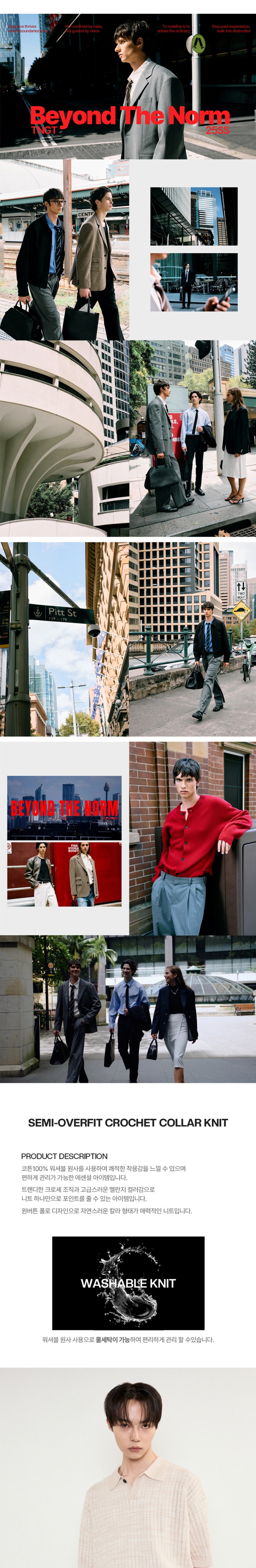 티엔지티 멜란지베이지 세미오버핏 크로셰 칼라니트