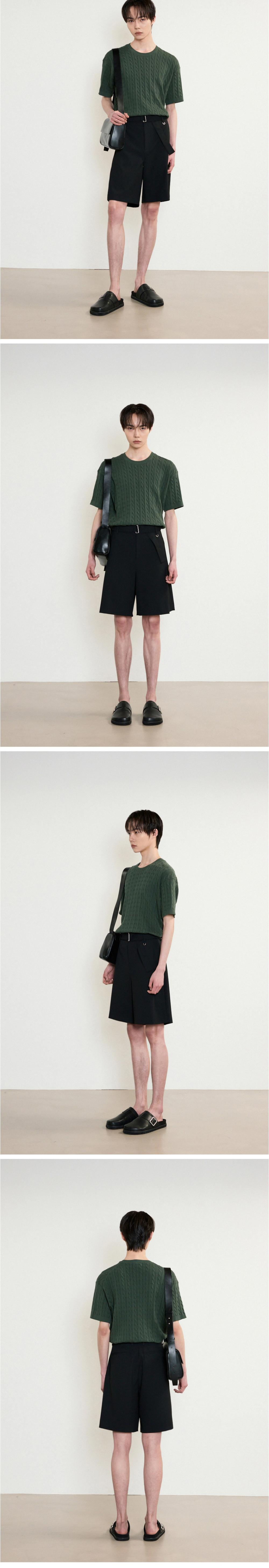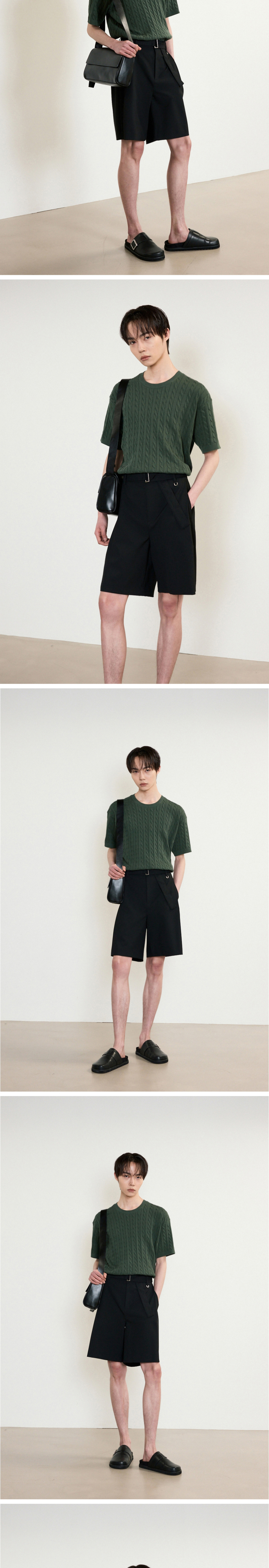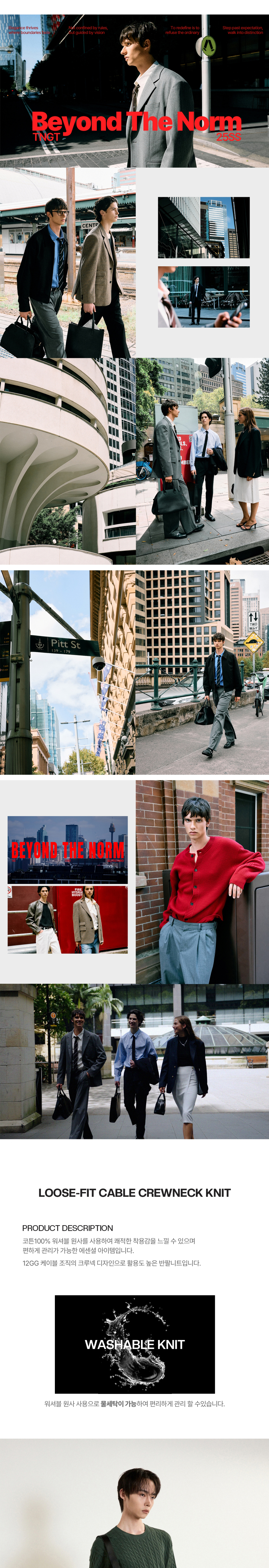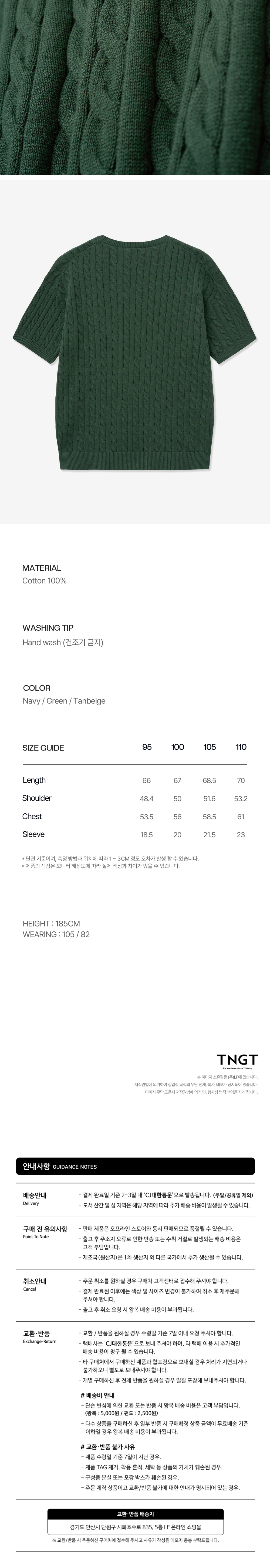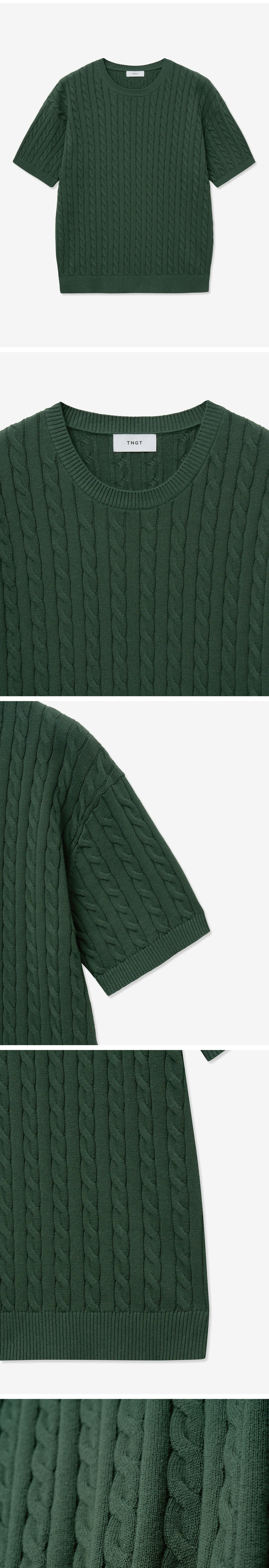 티엔지티 그린 루즈핏 케이블 크루넥 니트