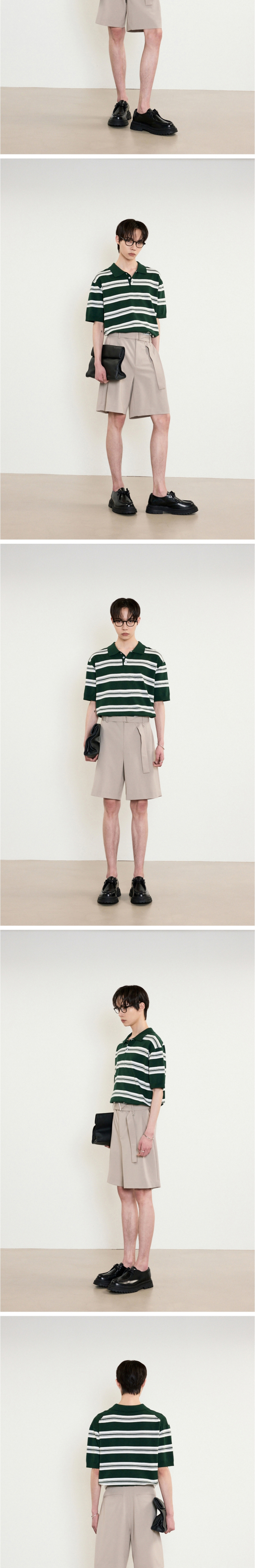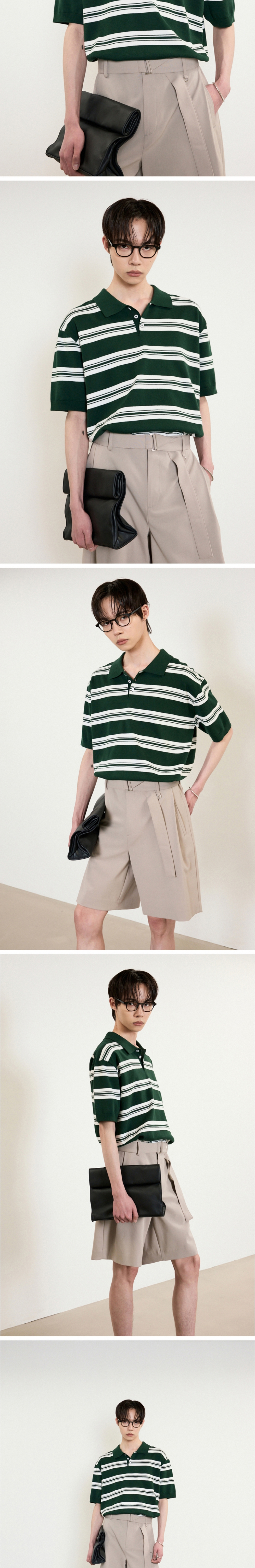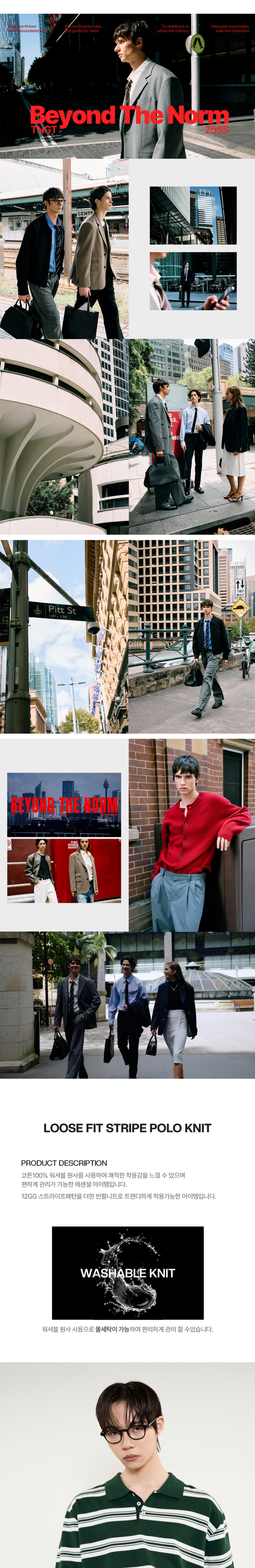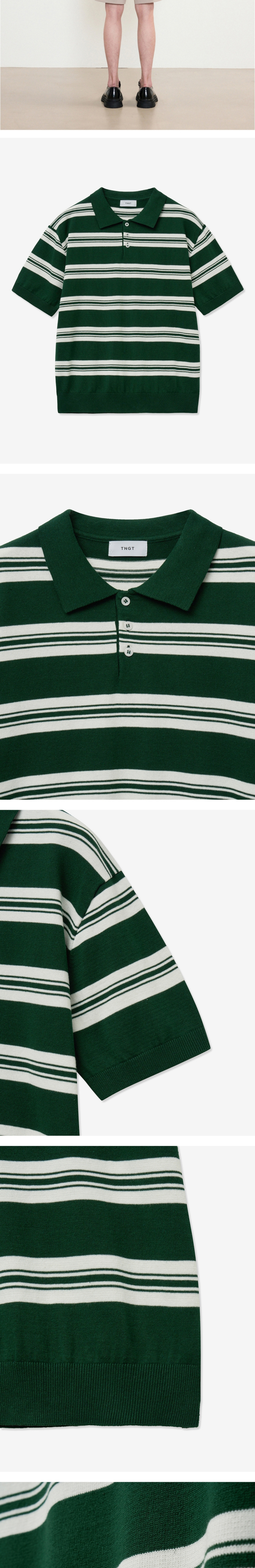 티엔지티 그린 루즈핏 스트라이프 폴로니트