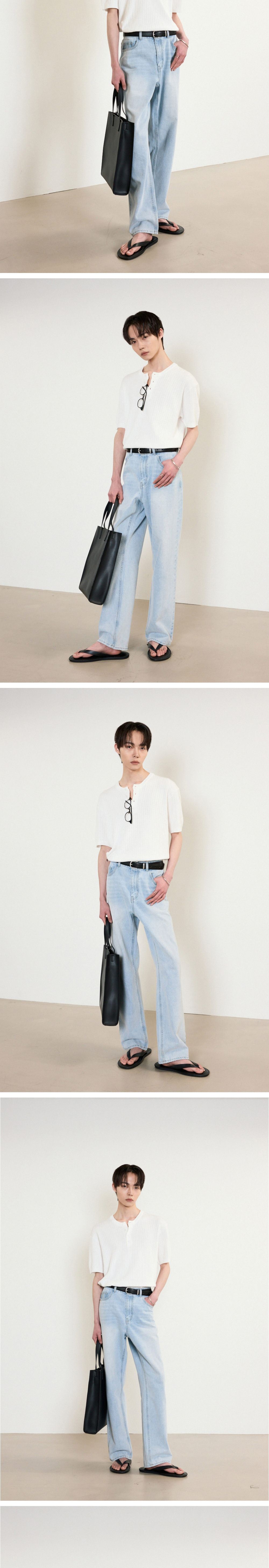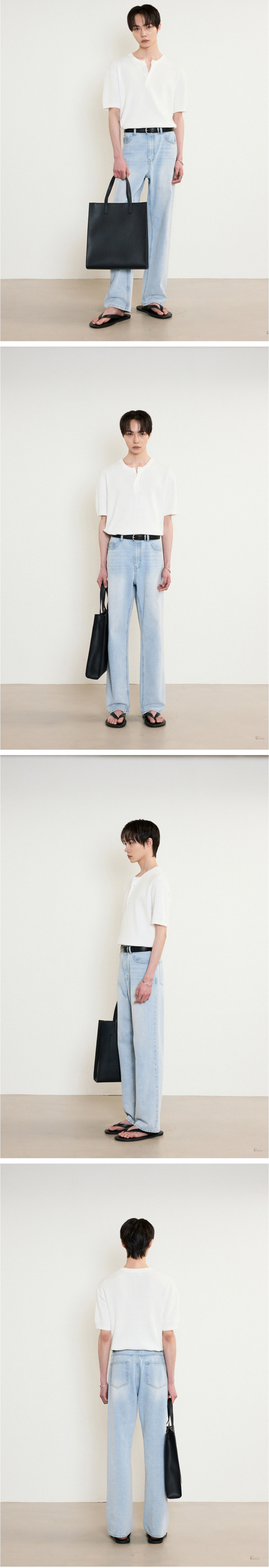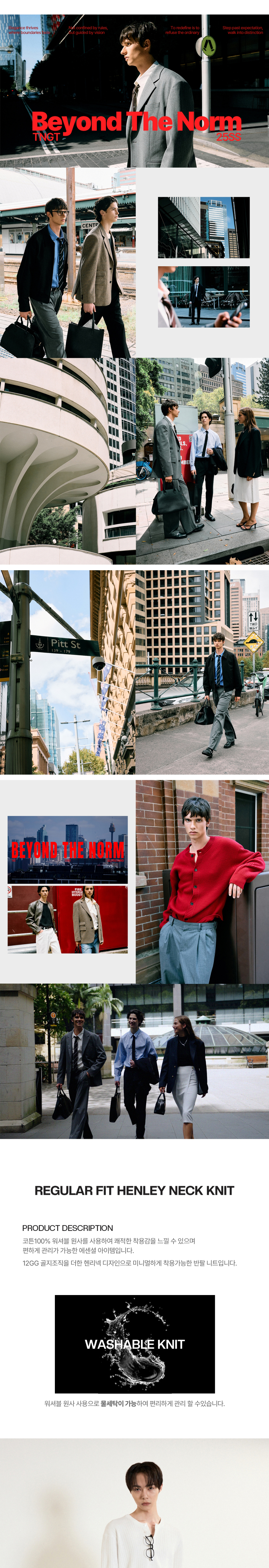 티엔지티 오프화이트 레귤러핏 헨리넥 니트