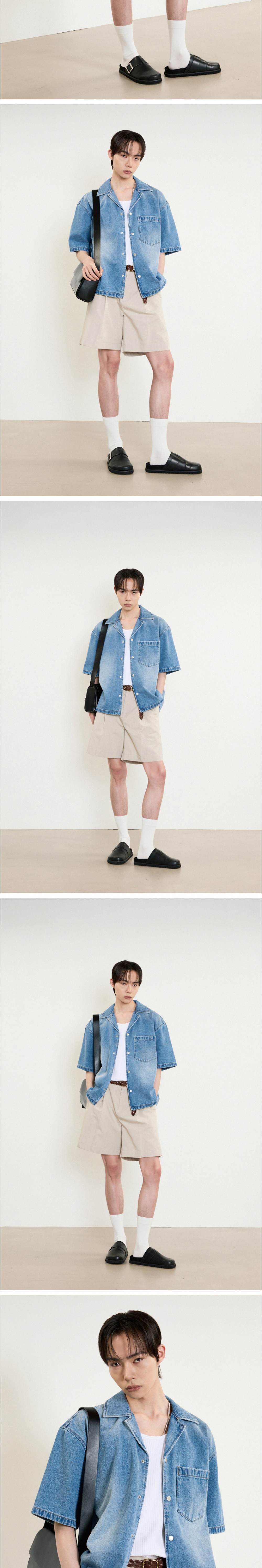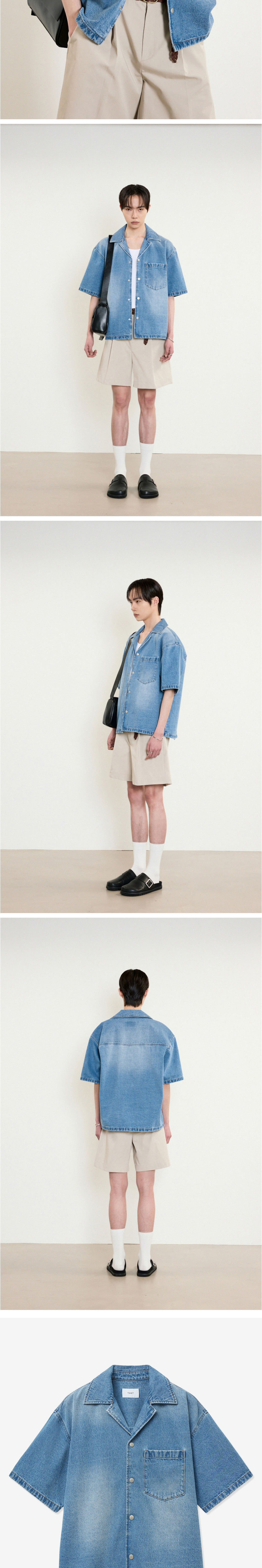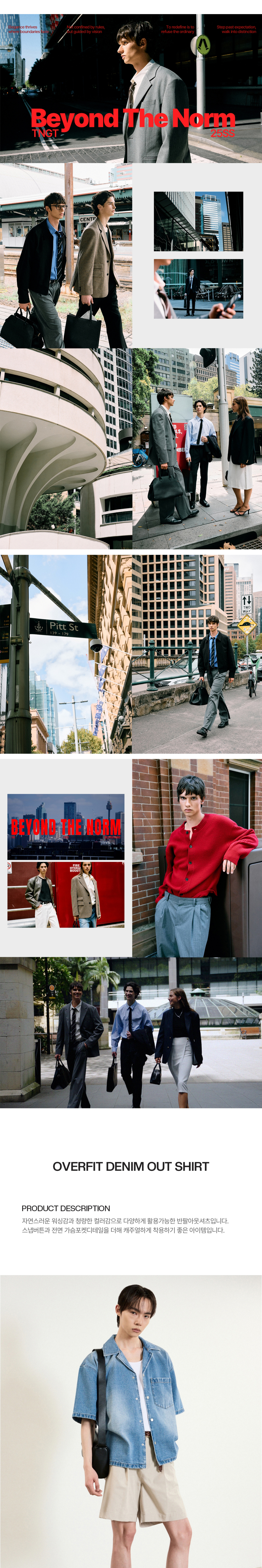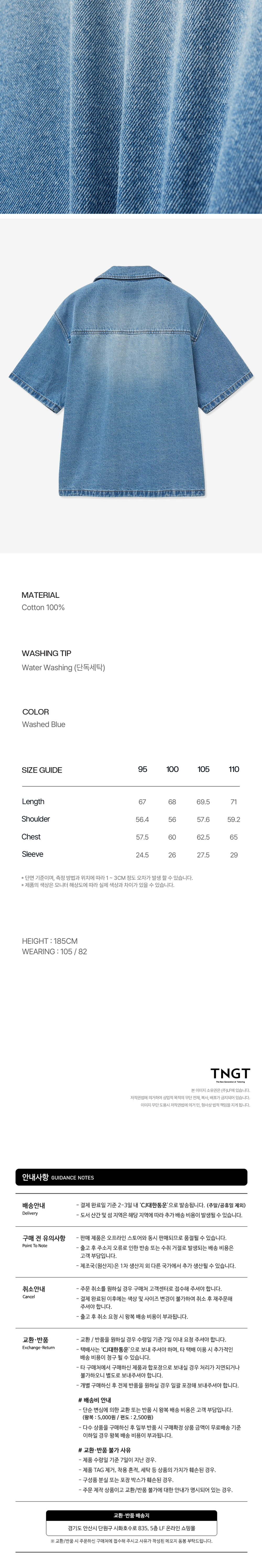 티엔지티 워시드블루 오버핏 데님 아웃셔츠