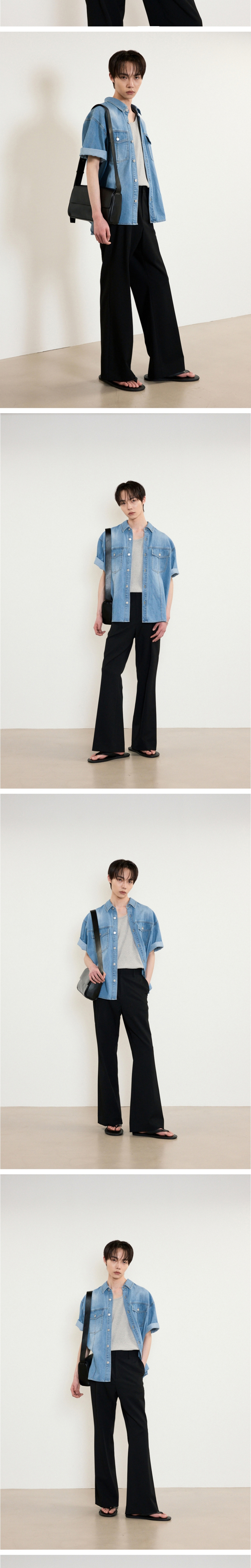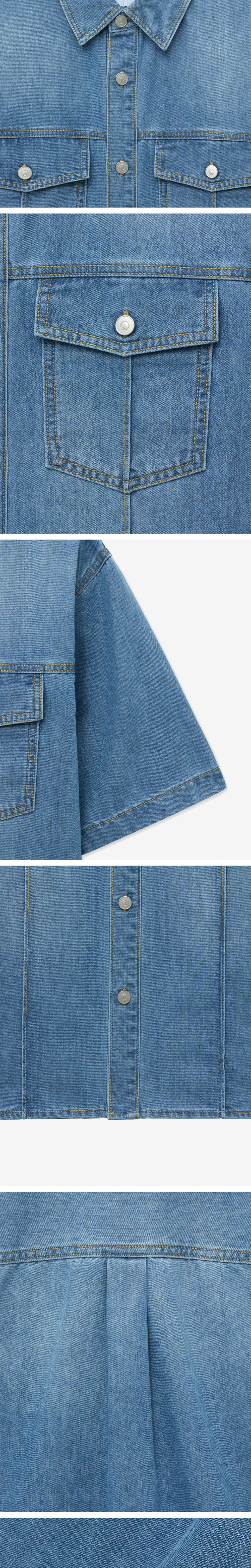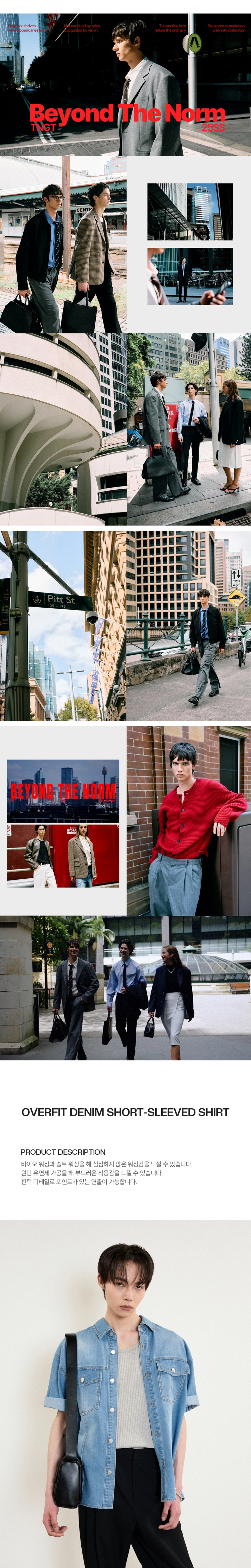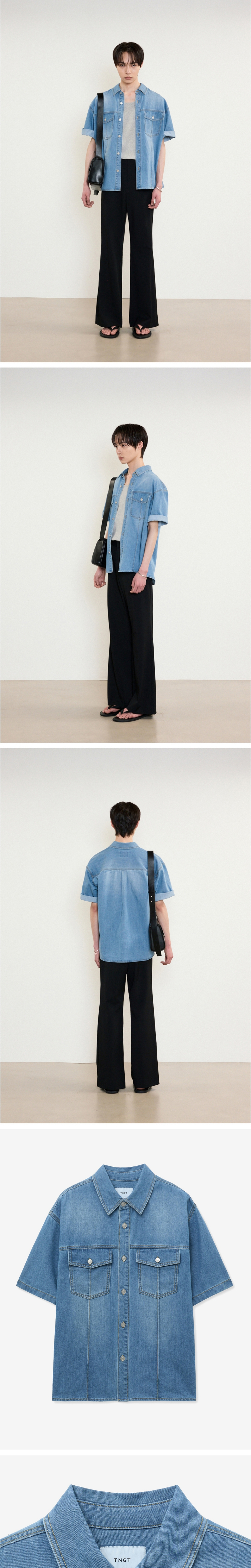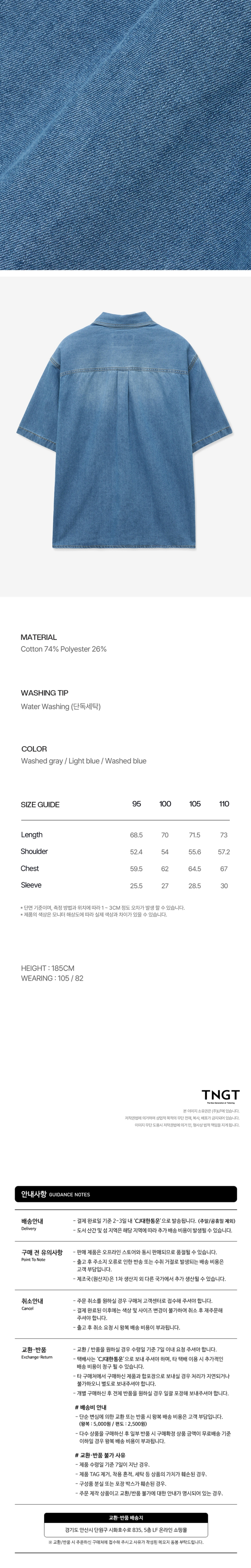 티엔지티 라이트블루 오버핏 데님 반팔 셔츠