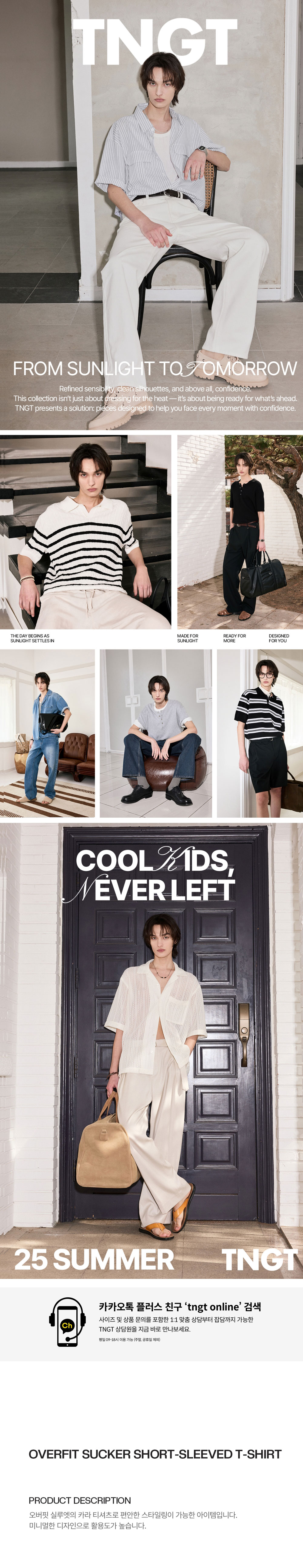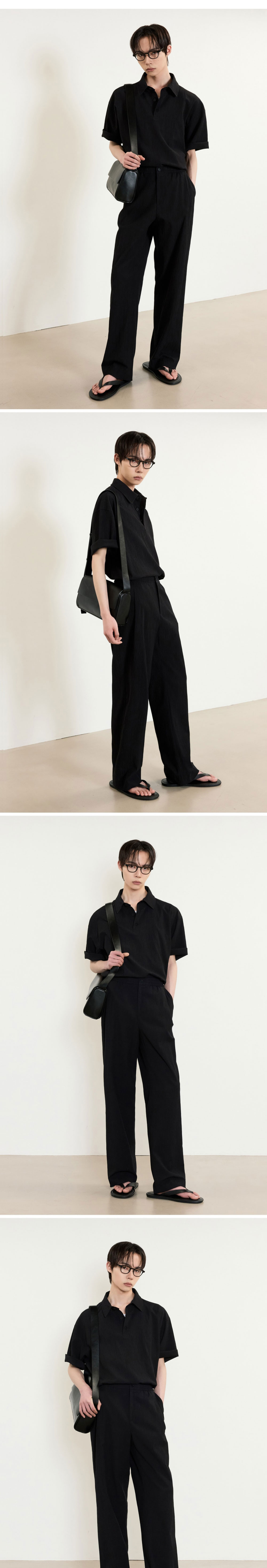티엔지티 블랙 Kinoshita 세미오버핏 시어서커 반팔 카라 티셔츠