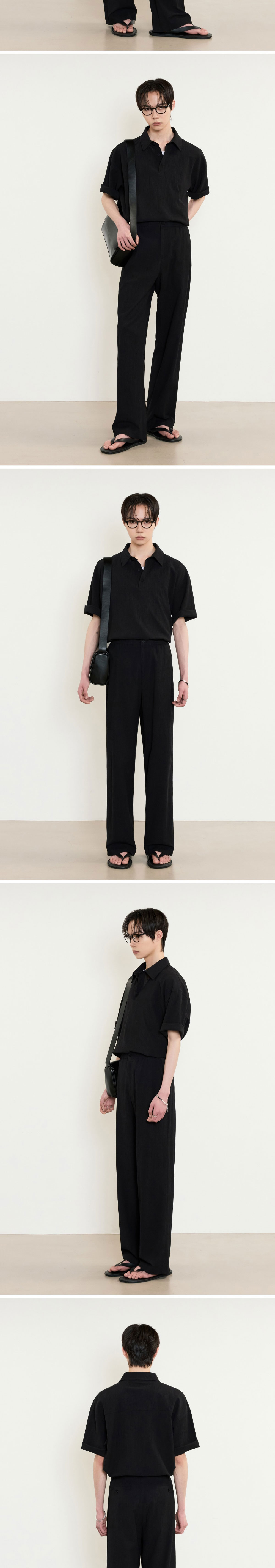 TNGT Kinoshita Semi Over-fit Seersucker Half Collar T-Shirts Black