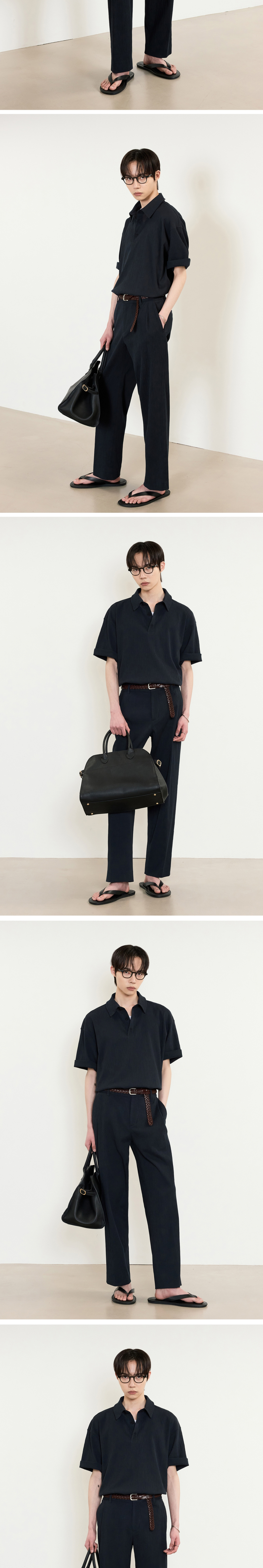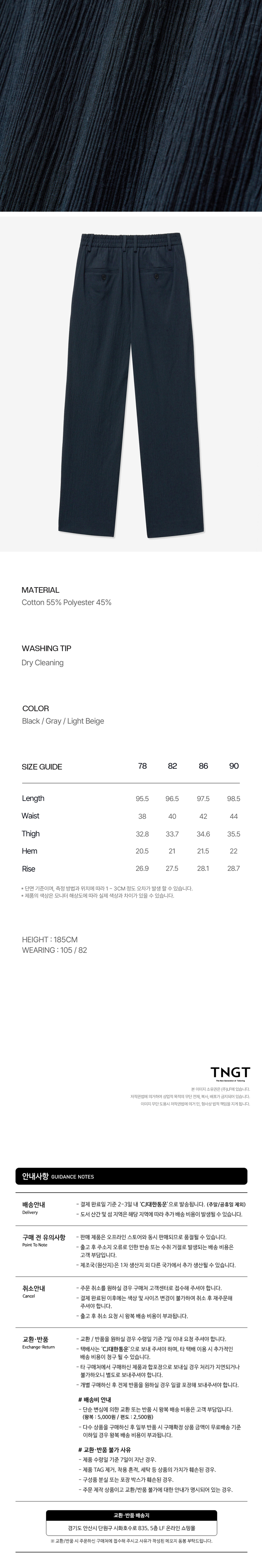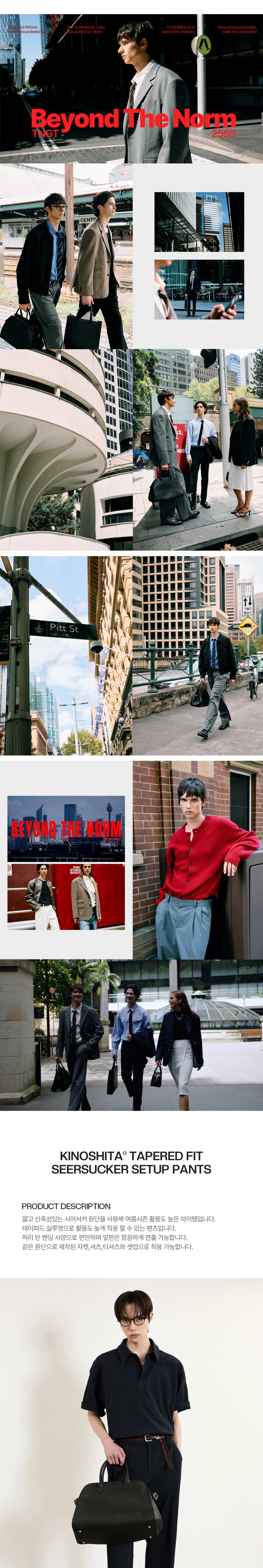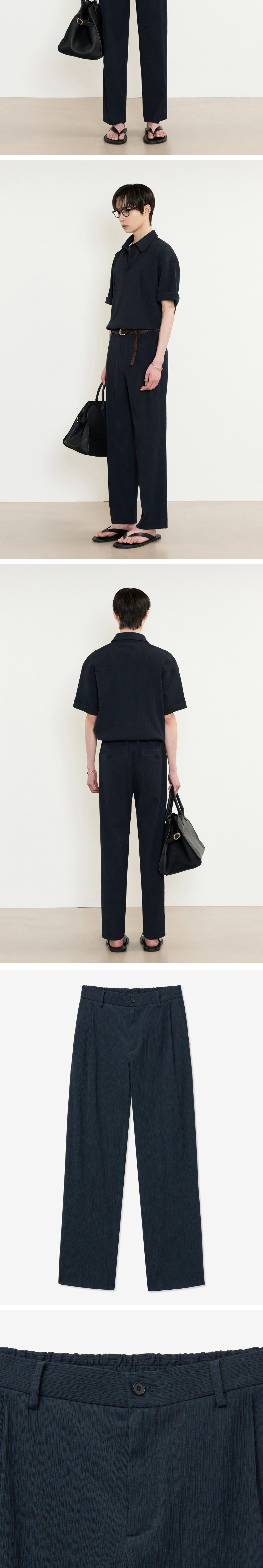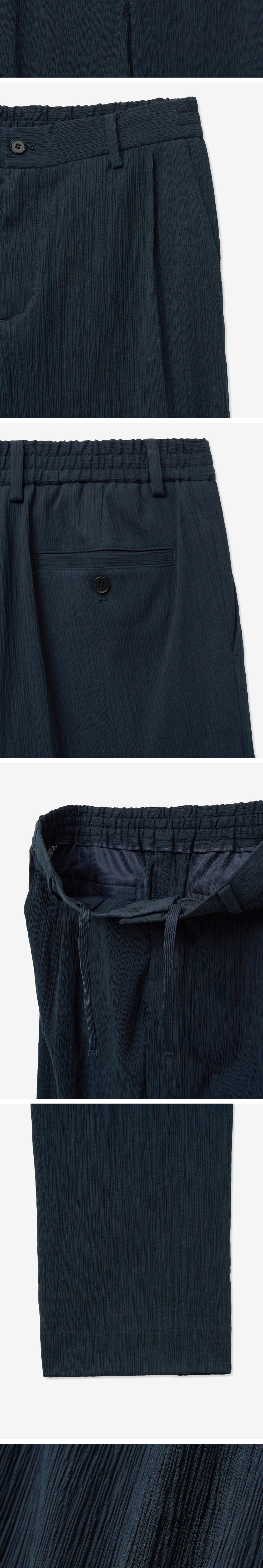 티엔지티 네이비 Kinoshita 테이퍼드핏 시어서커 셋업 팬츠