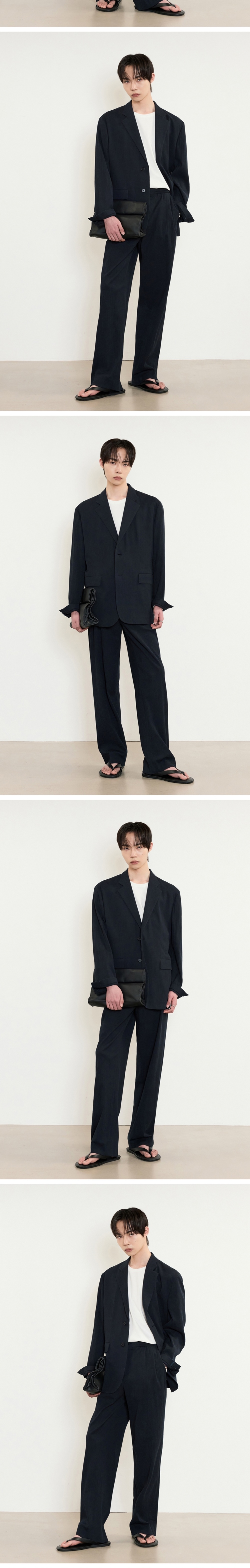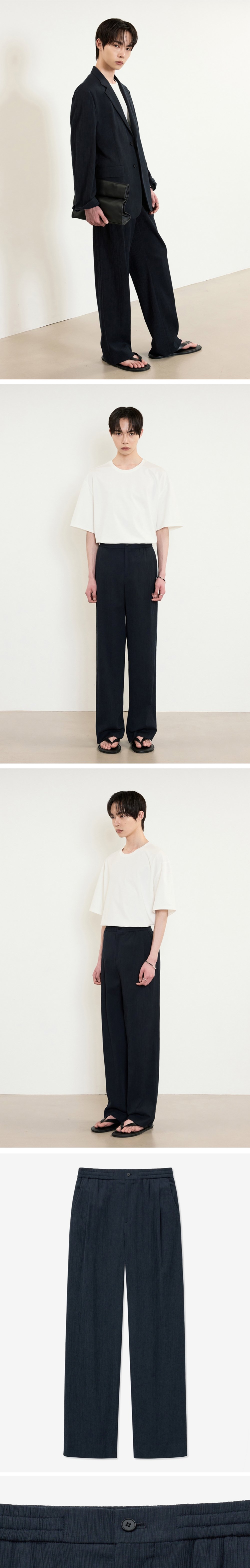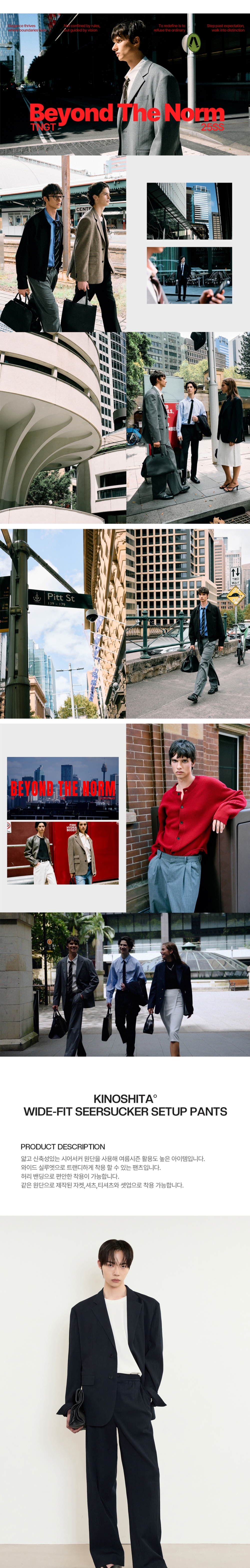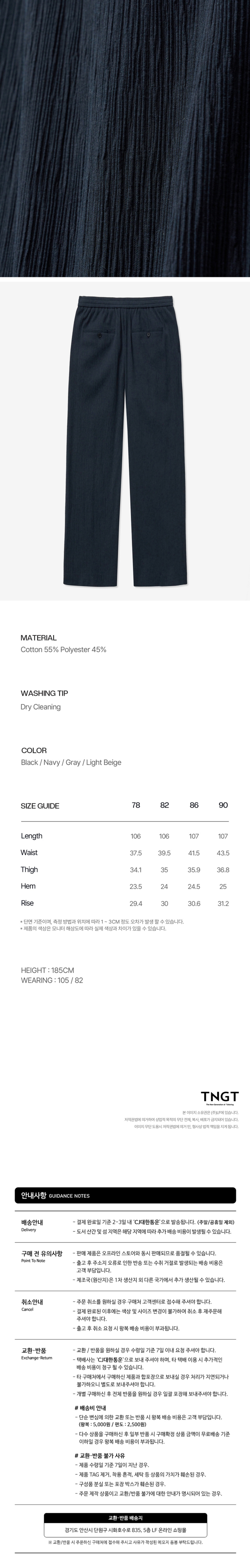 티엔지티 네이비 Kinoshita 와이드핏 시어서커 셋업 팬츠