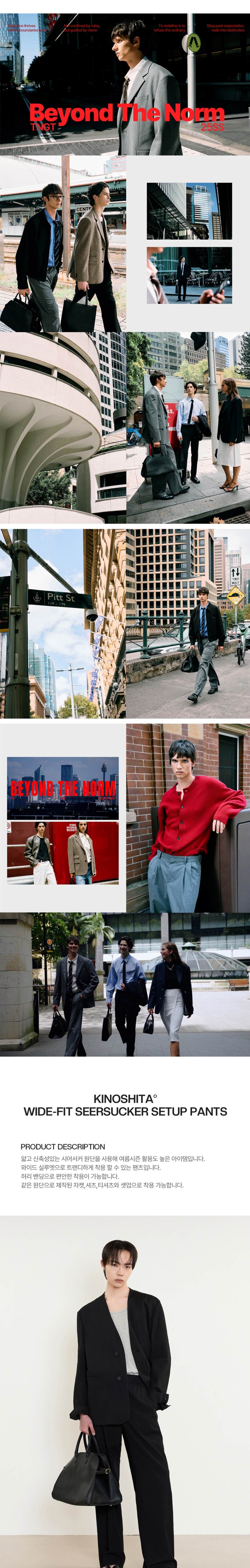 티엔지티 블랙 Kinoshita 와이드핏 시어서커 셋업 팬츠