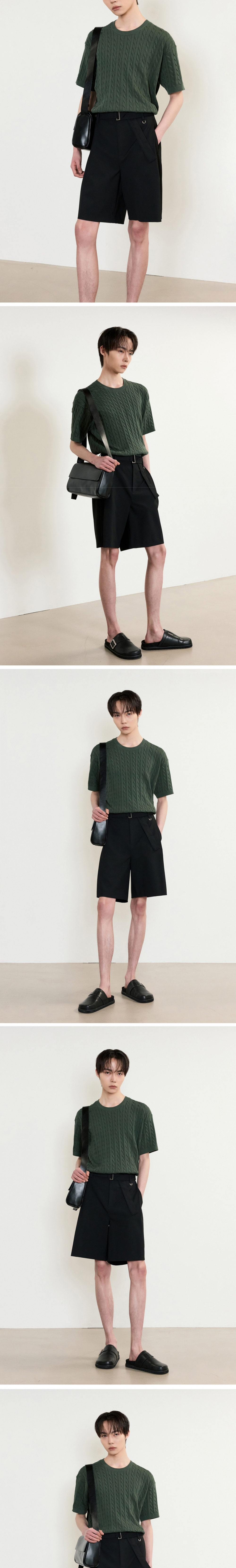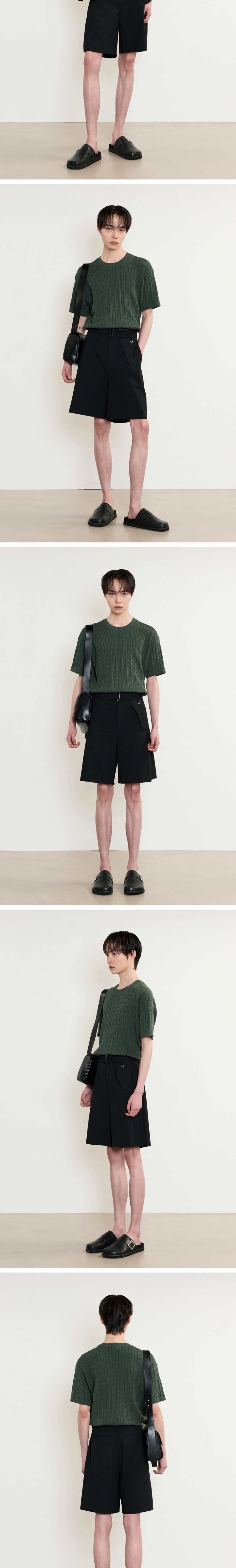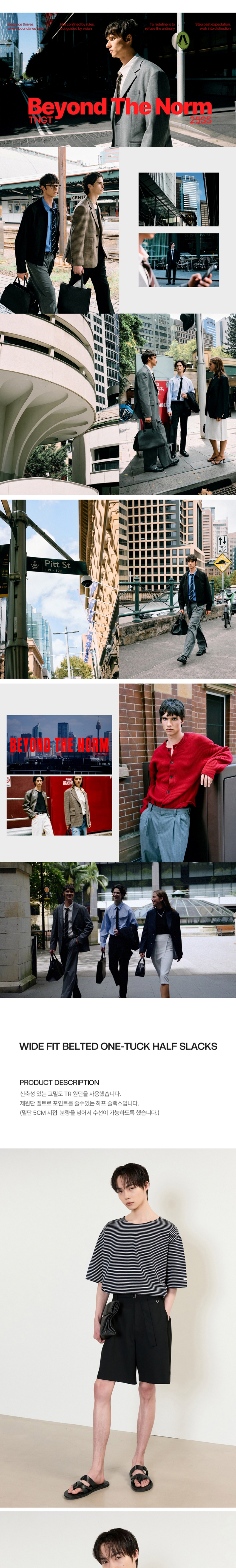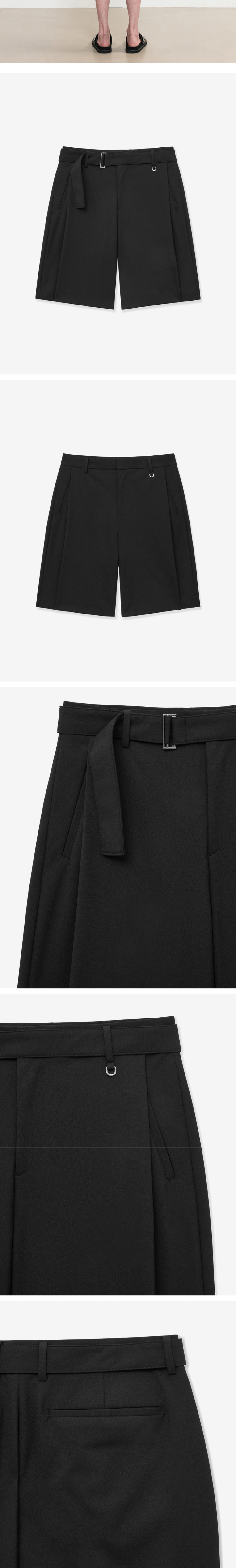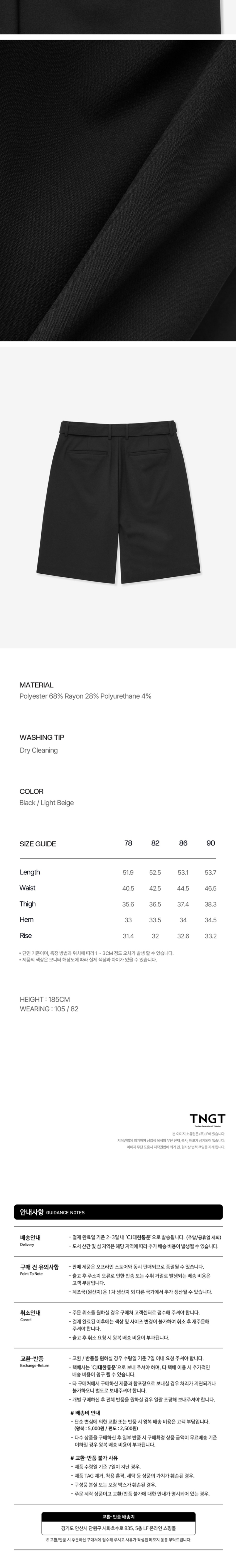 티엔지티 블랙 와이드핏 벨티드 원턱 하프슬랙스