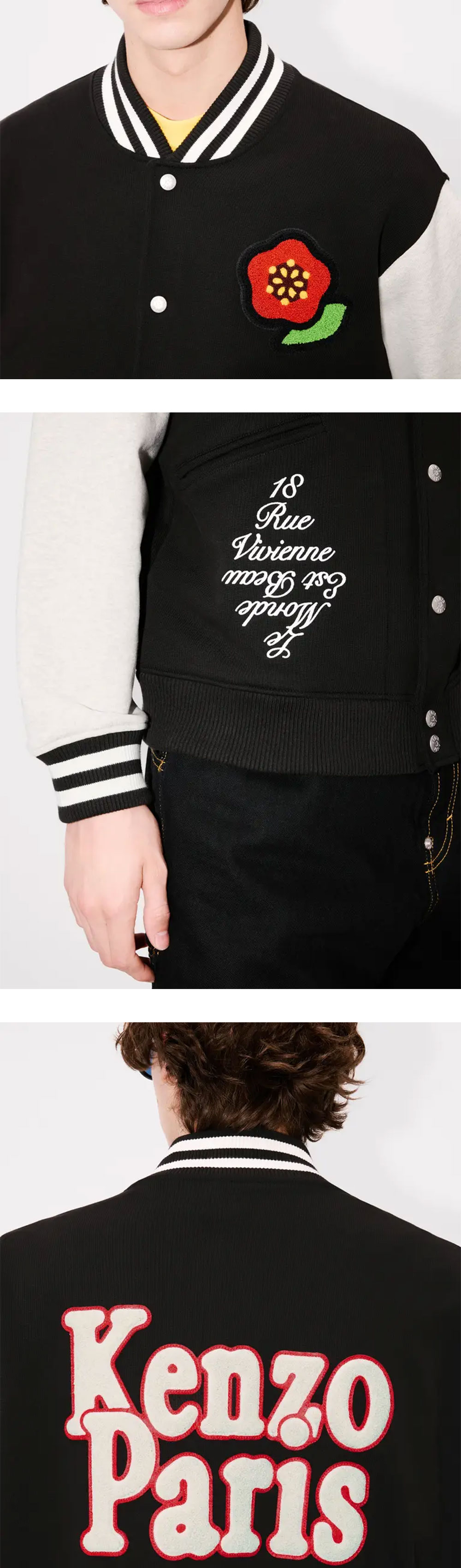 겐조 팝 자수 젠더리스 바시티 봄버 블랙 - 25SS