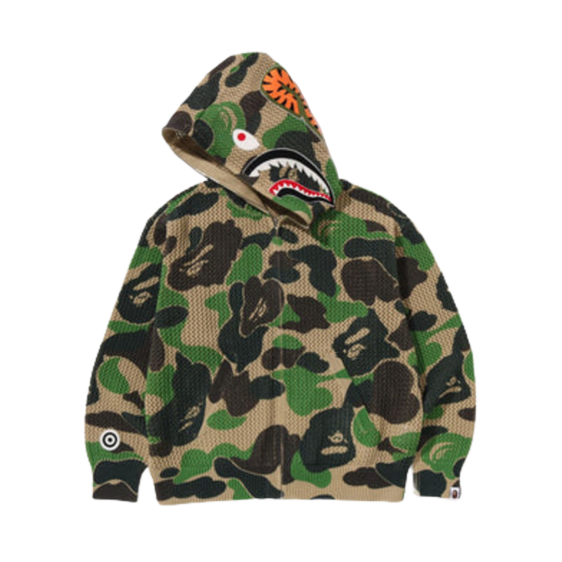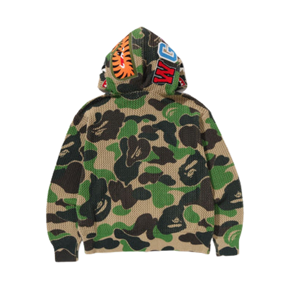 베이프 ABC 카모 크로셰 릴렉스드 핏 샤크 풀 집 후드 그린