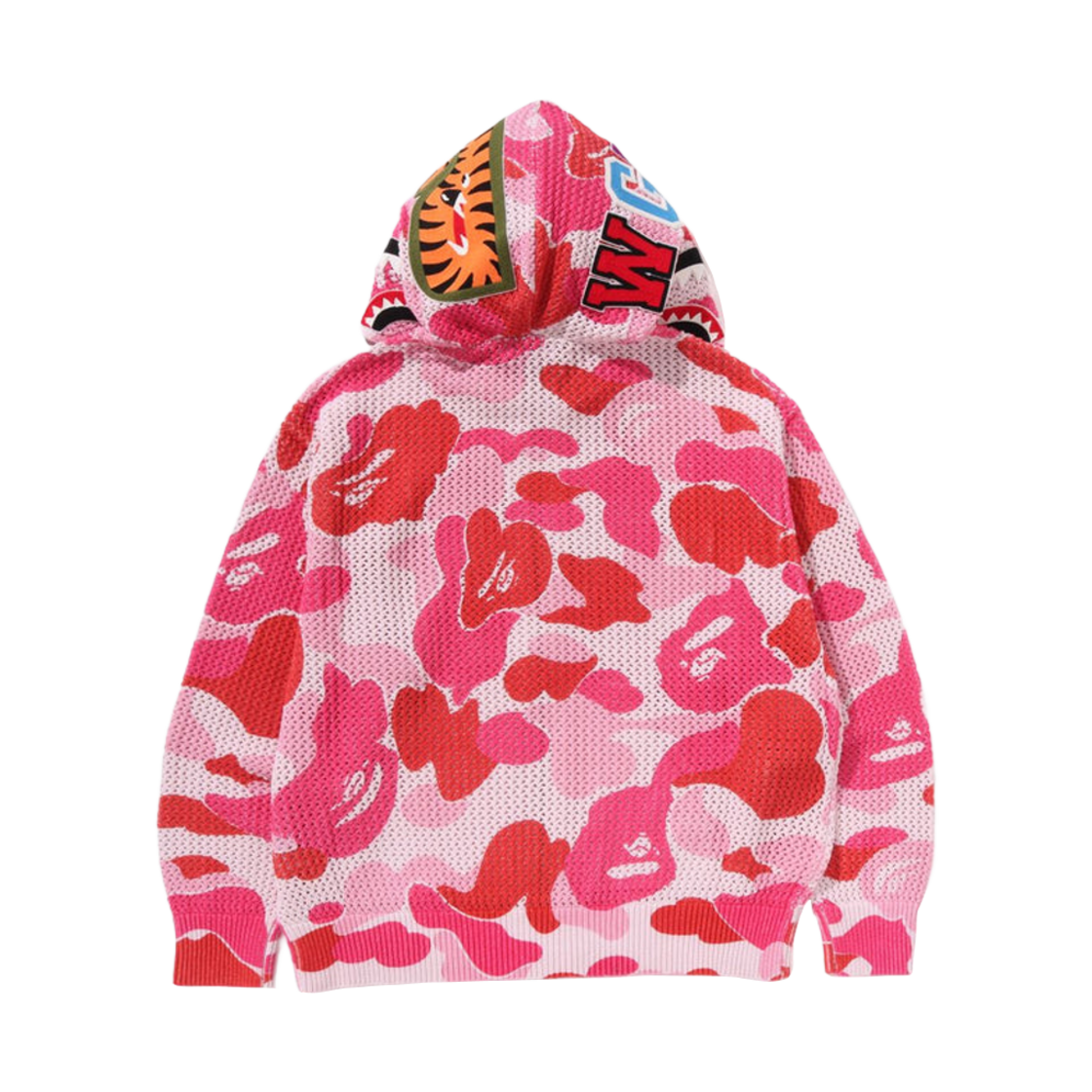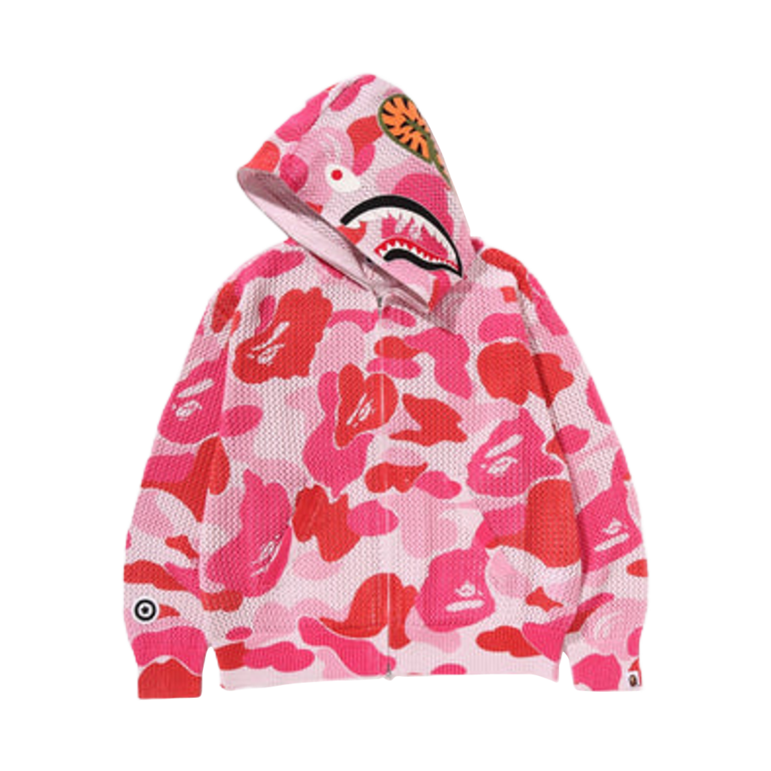 베이프 ABC 카모 크로셰 릴렉스드 핏 샤크 풀 집 후드 핑크