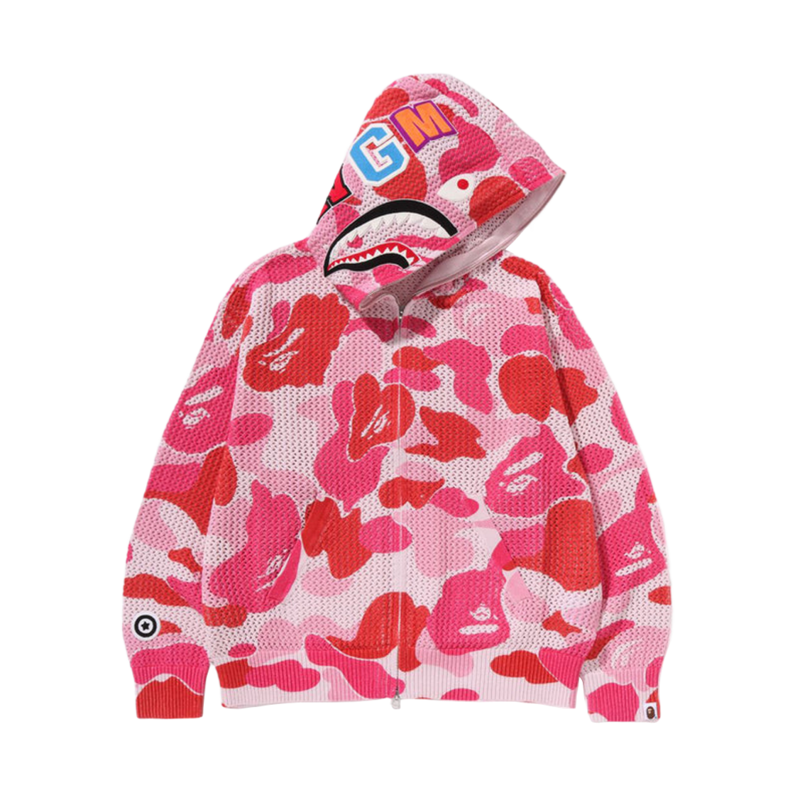 BAPE ABC Camo Crochet Relaxed Fit Shark Full Zip Hoodie Pink