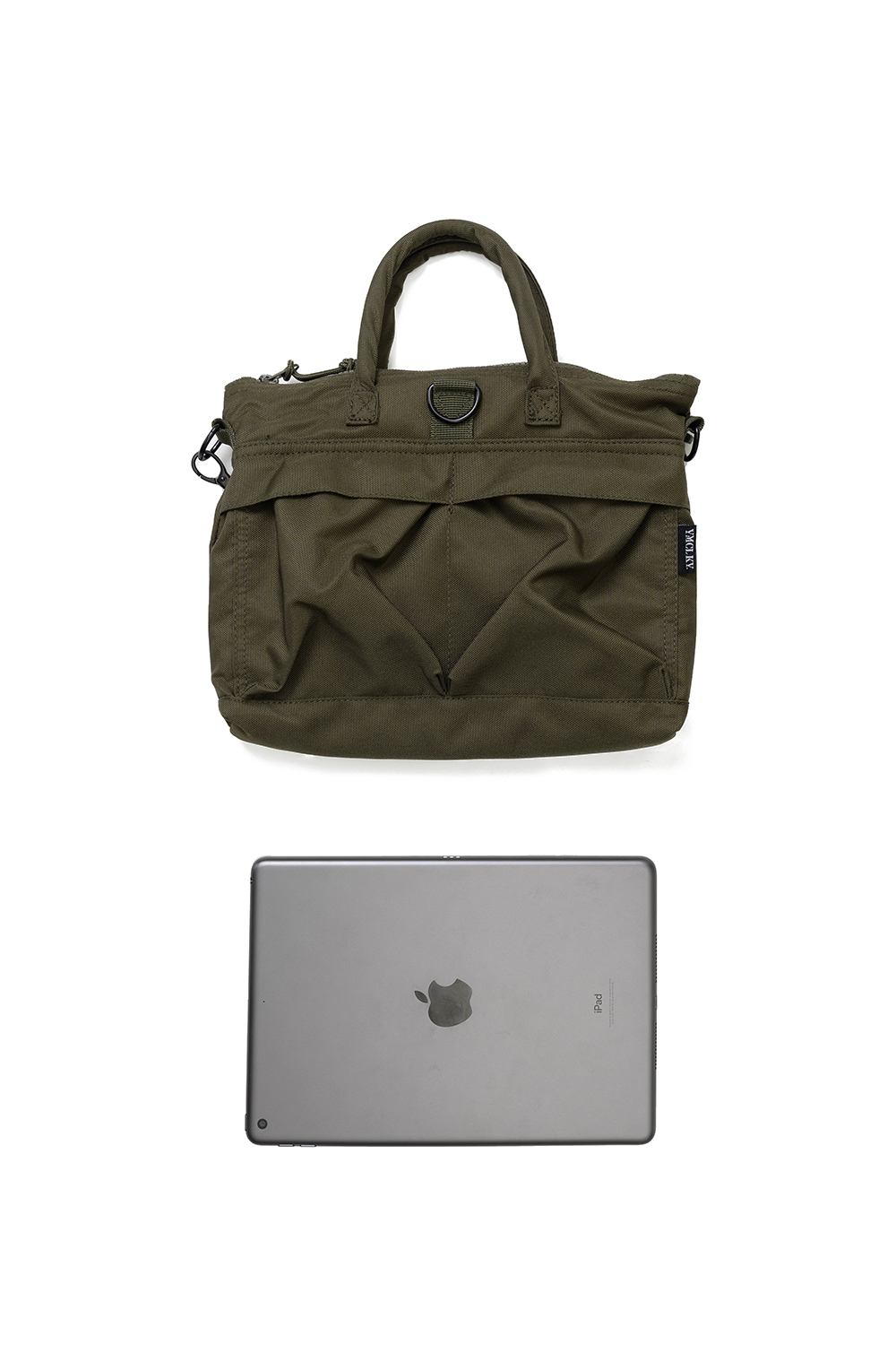 YMCL KY Helmet Bag Small - Olive YMCL KY의 스테디셀러인 Helmet Bag의 스몰 제품입니다. 디테일은 충실히 재현했으며, 크기만 작아졌습니다. 프론트의 2개의 버튼 타입 포켓과 내부 양측의 2개의 포켓이 있어 수납에 용이합니다. * Polyester * YMCL KY 는 합리적인 가격으로 제품을 제공하기 위하여 별도의 포장이 존재하지 않습니다. * 빛에 의한 제품의 색감 차이가 존재 할 수 있습니다. * Made in China (cm) 가로 30 X 세로 24 스트랩 110 * 측정 방법에 따라 오차가 발생할 수 있습니다.