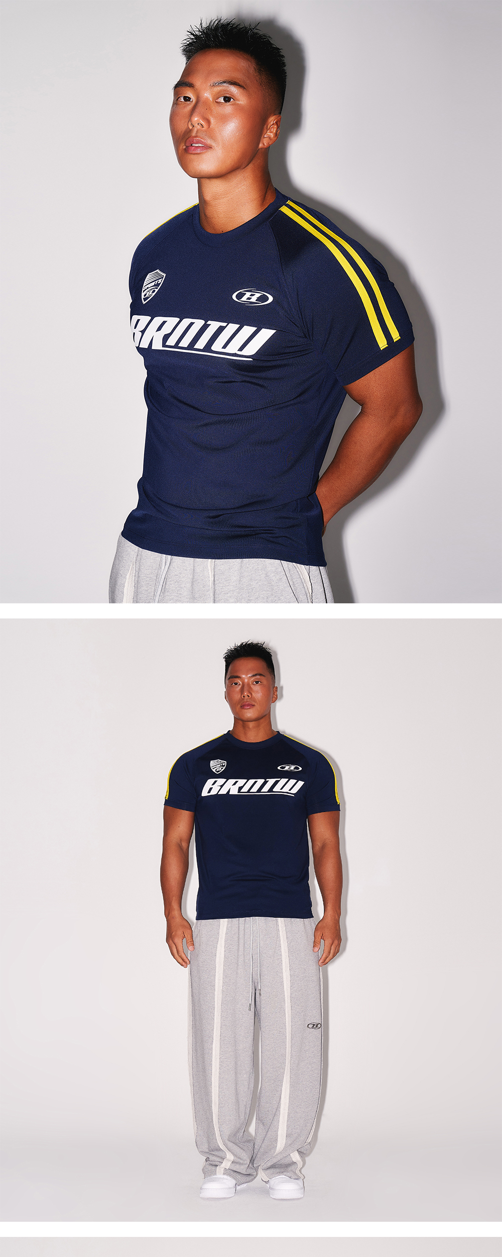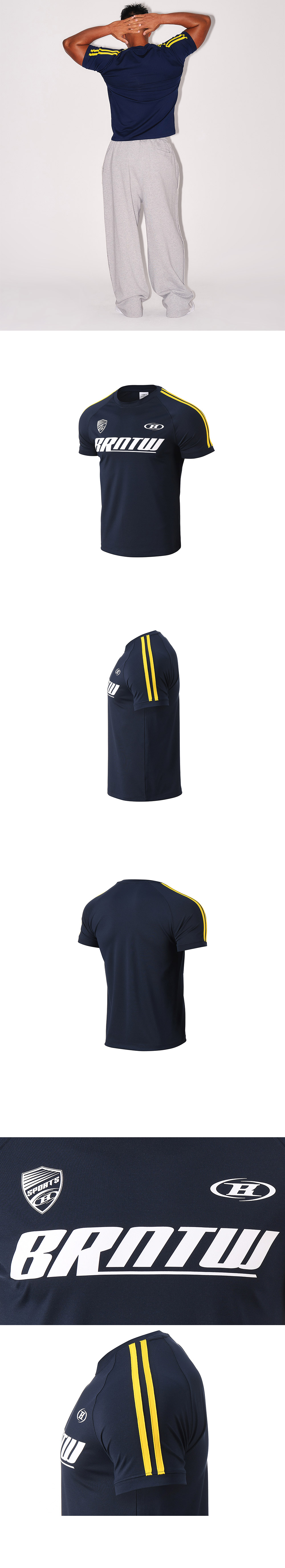 [DETAILS] * BRNTW 트랙라인 티셔츠 - 흡습속건 폴리스판 원단 - 트랙 라인 배색 포인트 - 스포티 로고 그래픽 포인트 - 레귤러핏 Material : Polyester 91%, Polyurethane 9% Fitting : TJ 1 Size, 172cm, 74kg